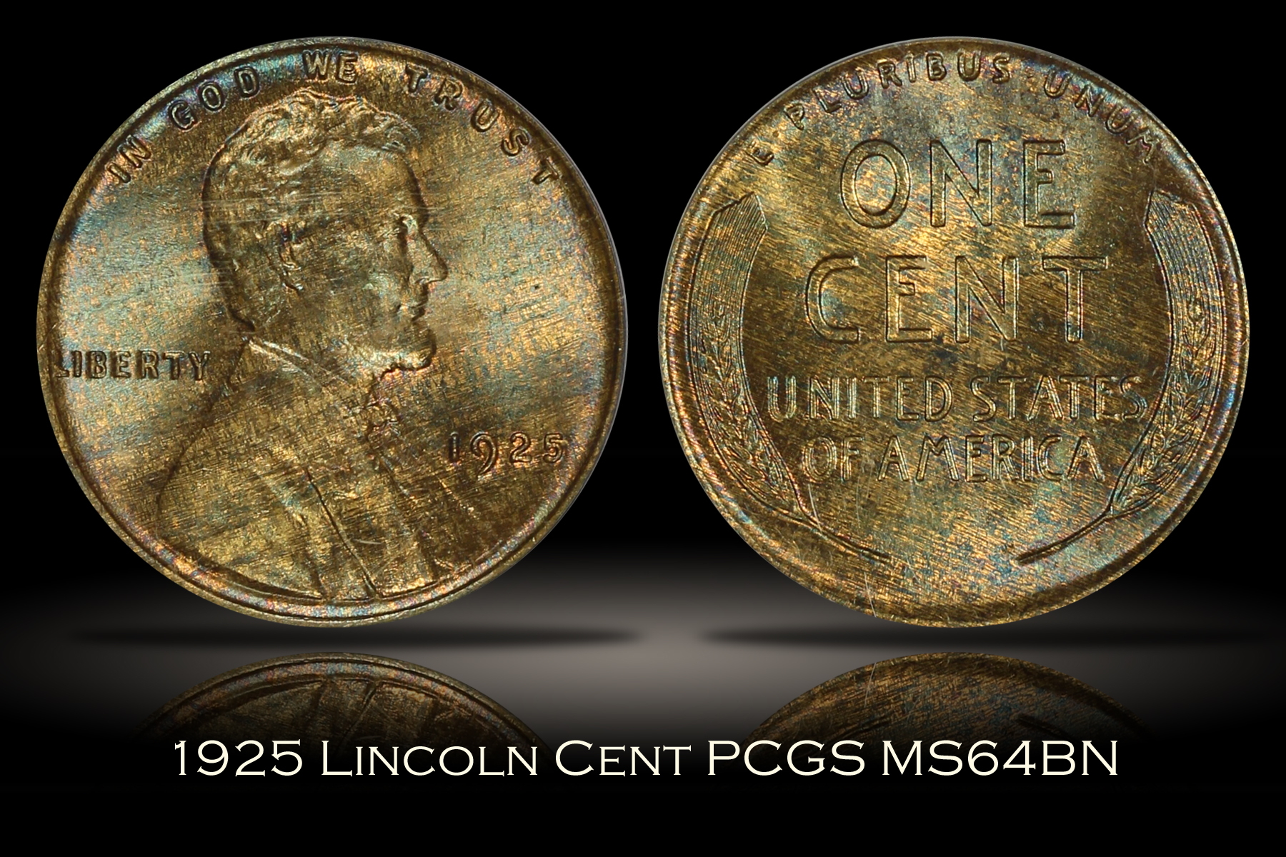 This 1925 Lincoln Cent has been graded MS64BN by PCGS. Although this is a relatively common date in a relatively common grade, the eye appeal of this coin is far from common. The piece is quite attractive with spectacular original woodgrain toning on both sides which looks even more amazing in hand. The so-called woodgrain toning with alternating light and dark streaks across the coin is the effect of improper alloy mixing which is not visible on freshly minted coins, but only appear later when the coin tones to a red-brown or brown color. Even under a close inspection, no major hits, marks or spotting is of note. A beautiful woody Lincoln Cent that is certainly worth a premium over your typical example of the date. |