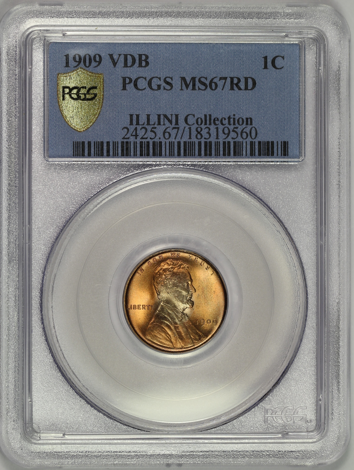 | The 1909 V.D.B. Lincoln Cent is a highly desirable first year issue as well as a one-year type coin. The first Lincoln Cents were released to the public on August 2, 1909. Very soon after their initial release, complaints were made regarding the prominent V.D.B. initials of the coin’s designer featured on the lower reverse even though other U.S. coins of the era feature the initial or initials of the designer. In response to such complaints, the Mint ordered the initials removed from the design. Although the 1909 V.D.B. Lincoln Cent is generally available in the MS67RD grade, with just over 200 examples graded by PCGS alone, the present example was carefully and patiently selected from countless examples. The coin is nearly flawless, is practically dripping with luster and is likely one of the best surviving 1909 V.D.B. Lincoln Cents. |