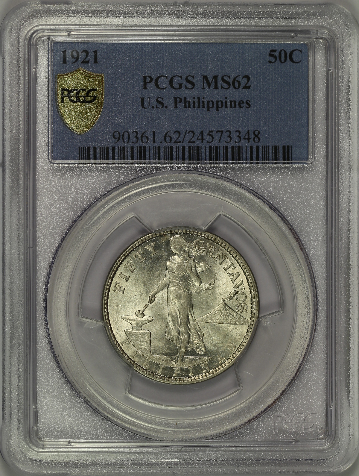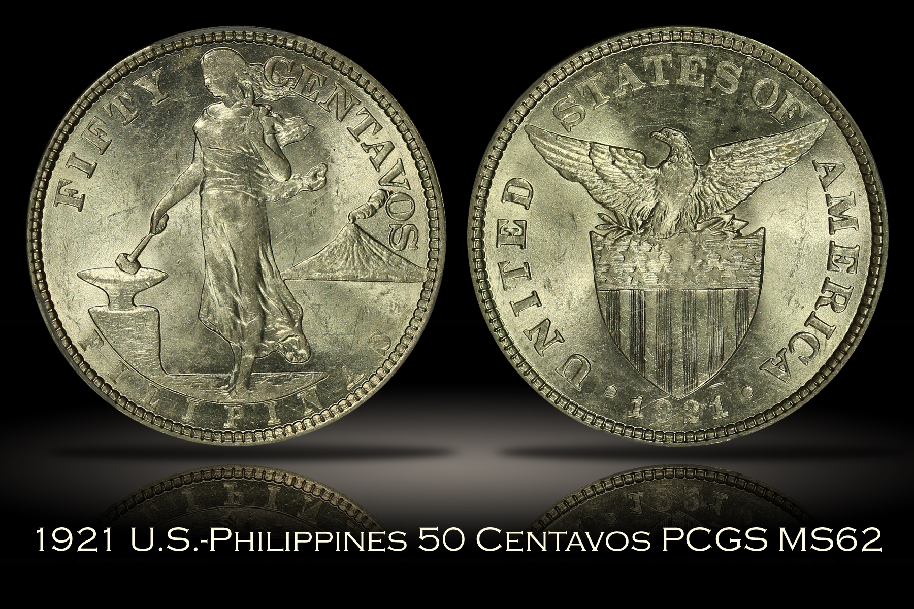 1921 U.S.-Philippines 50 Centavos PCGS MS62
