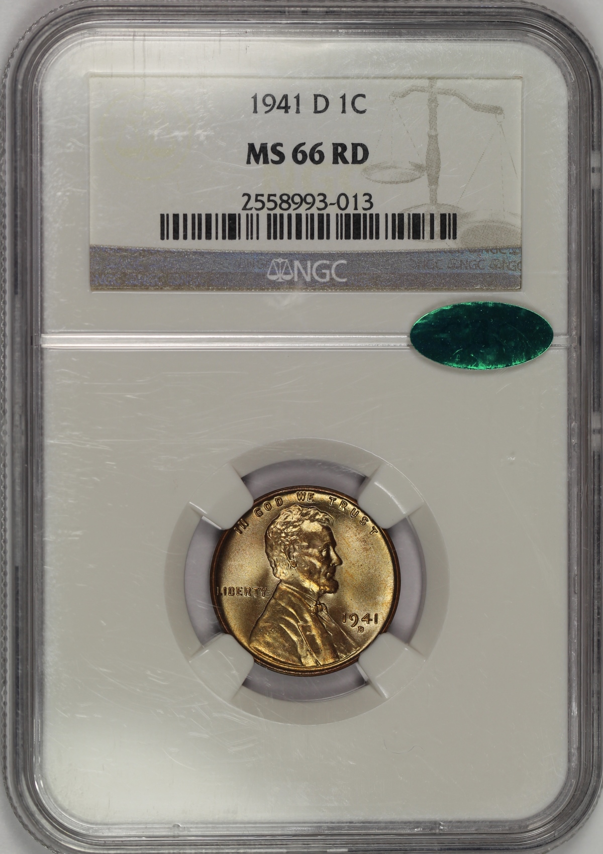 | 1941-D Lincoln Cent NGC MS66RD CAC |