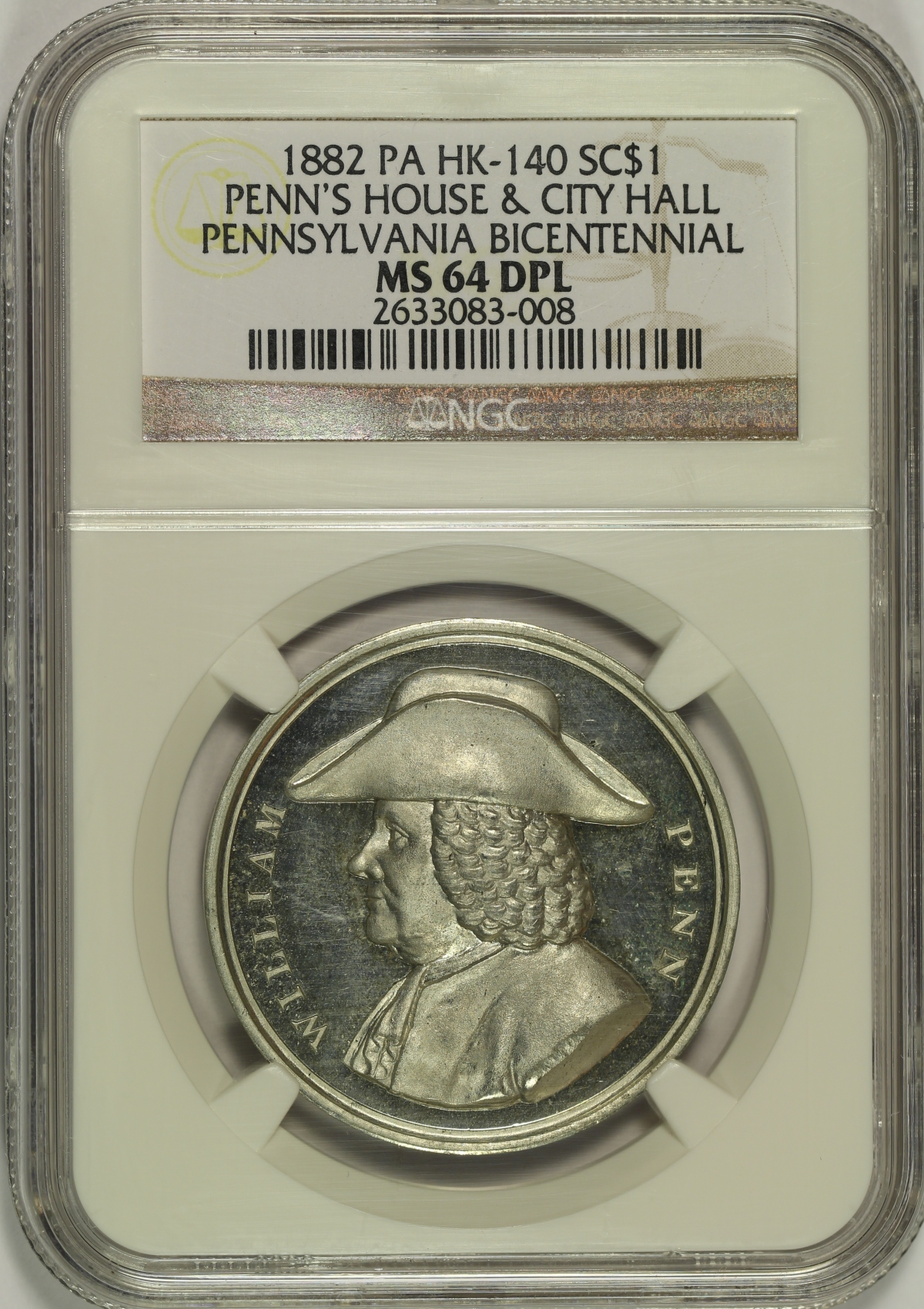 | 1882 Penn's House & City Hall HK-140 NGC MS64DPL |