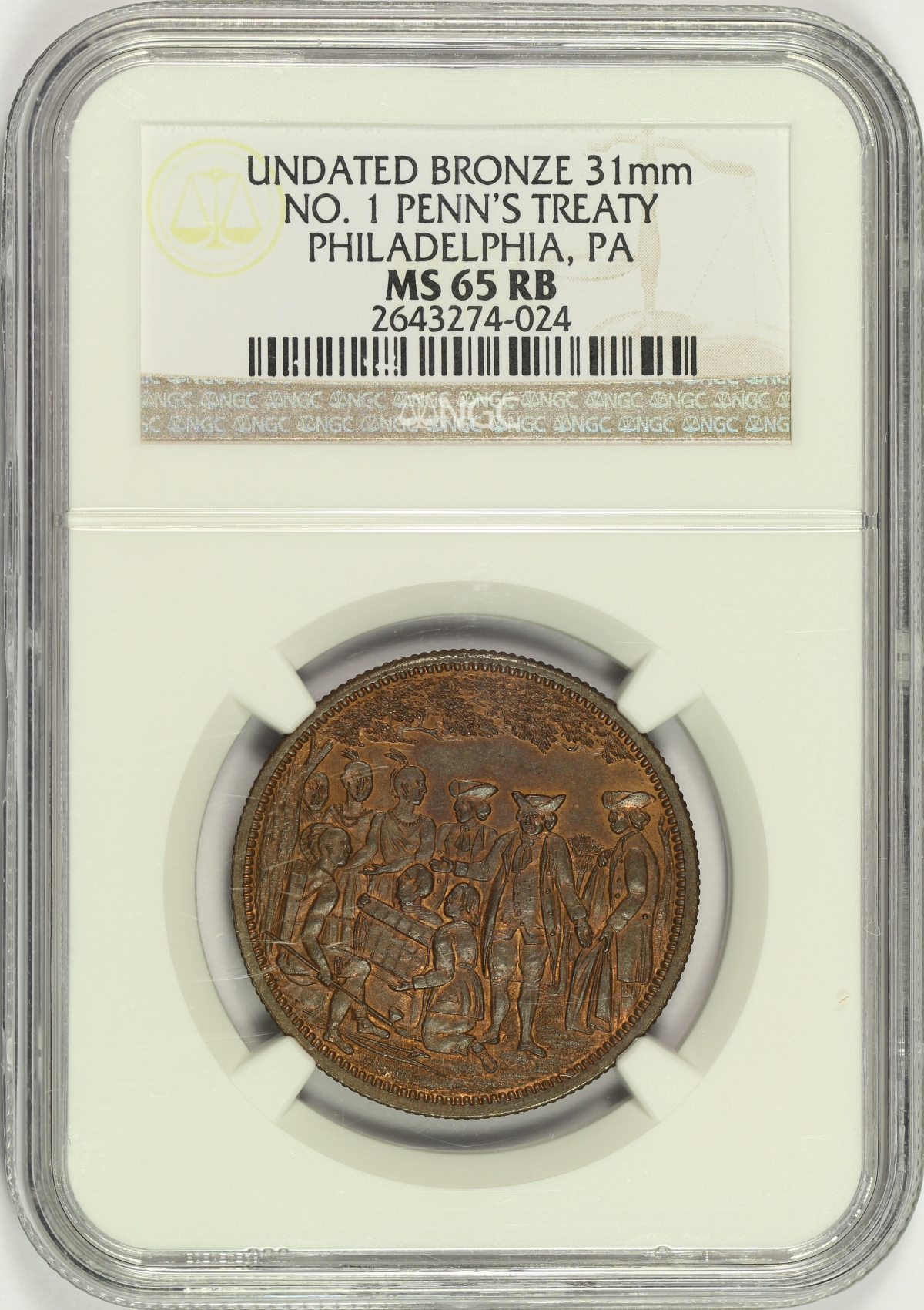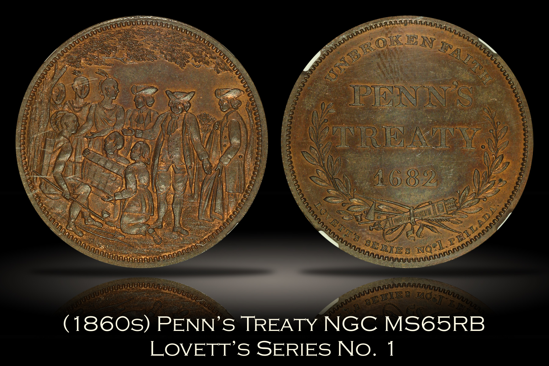 Undated 1860s Lovett's Series No. 1 Penn's Treaty NGC MS65RB