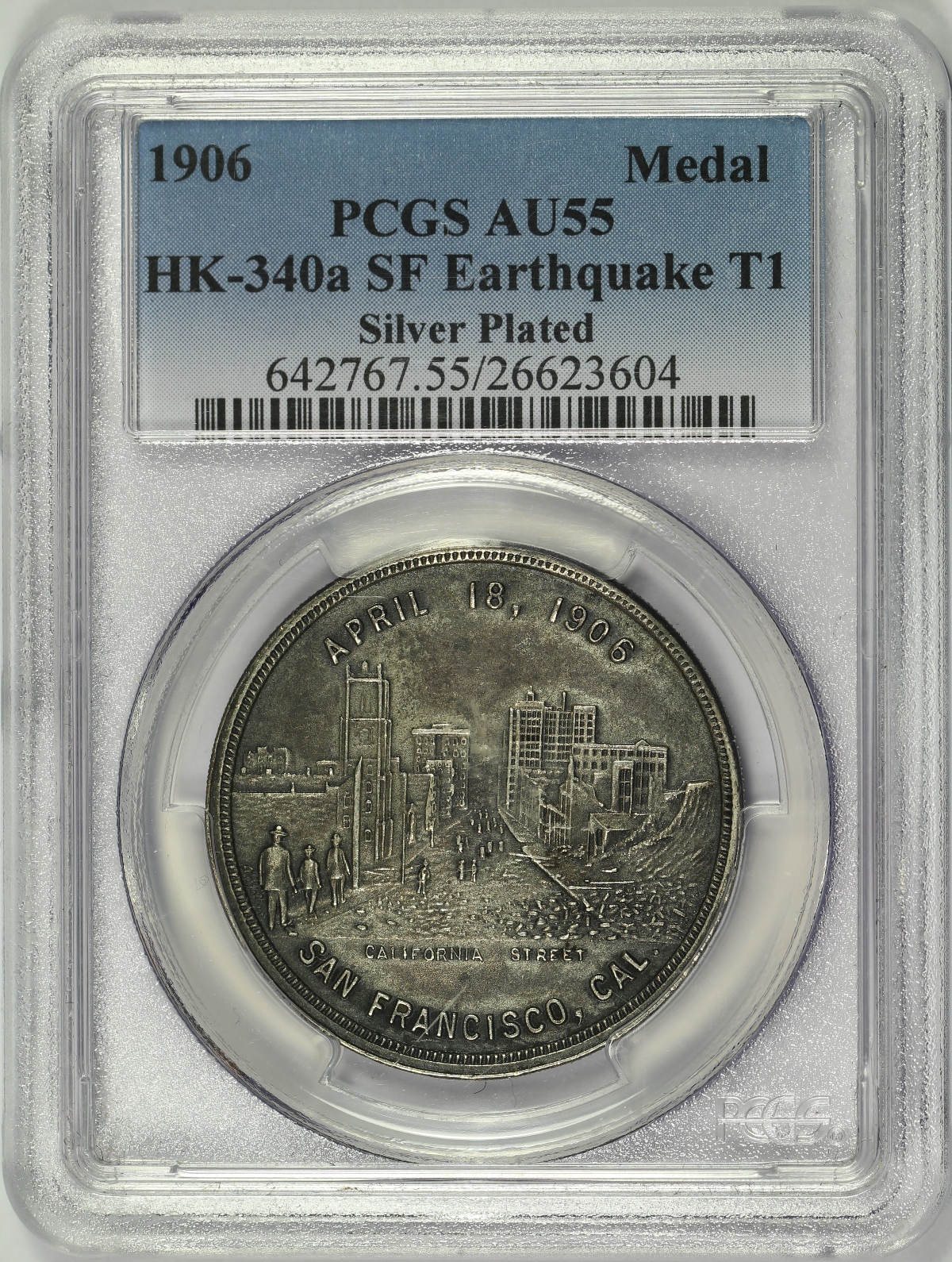 | 1906 San Francisco Earthquake Medal HK-340A PCGS AU55 |