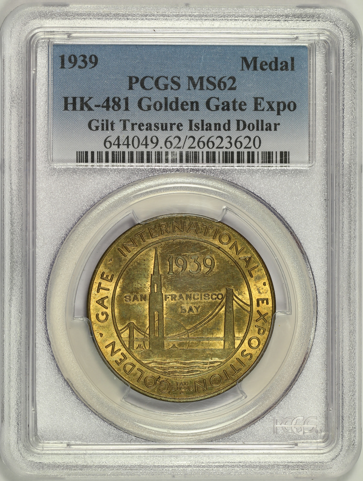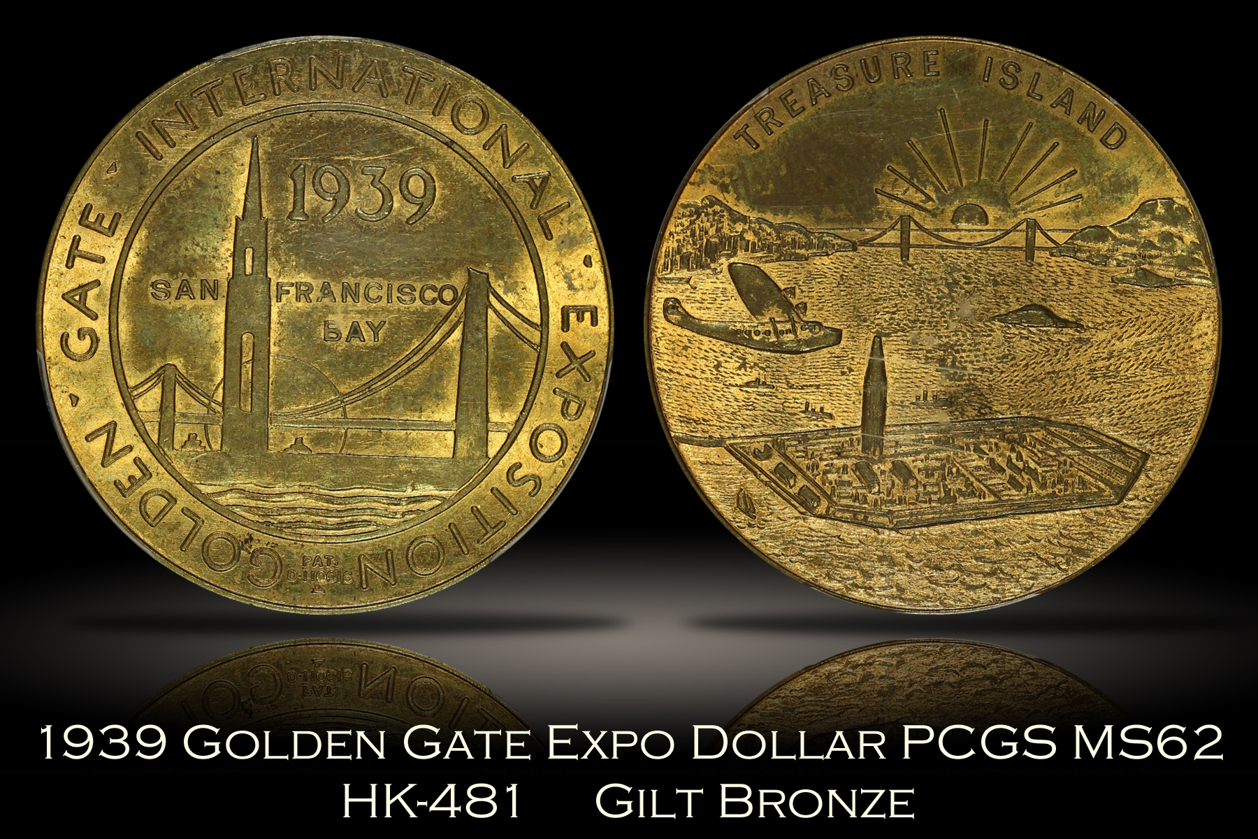 | 1939 Golden Gate Expo Treasure Island Dollar HK-481 Gilt Bronze PCGS MS62 |
