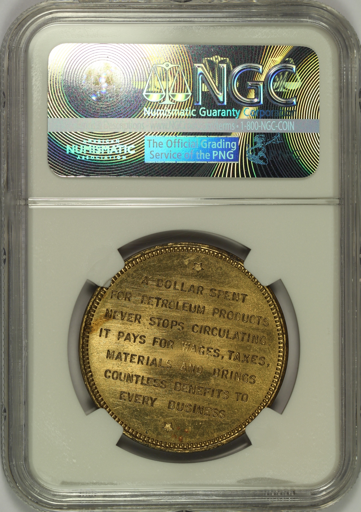 | 1939 Golden Gate Expo Petroleum Dollar HK-484 Gilt Bronze NGC MS64 |