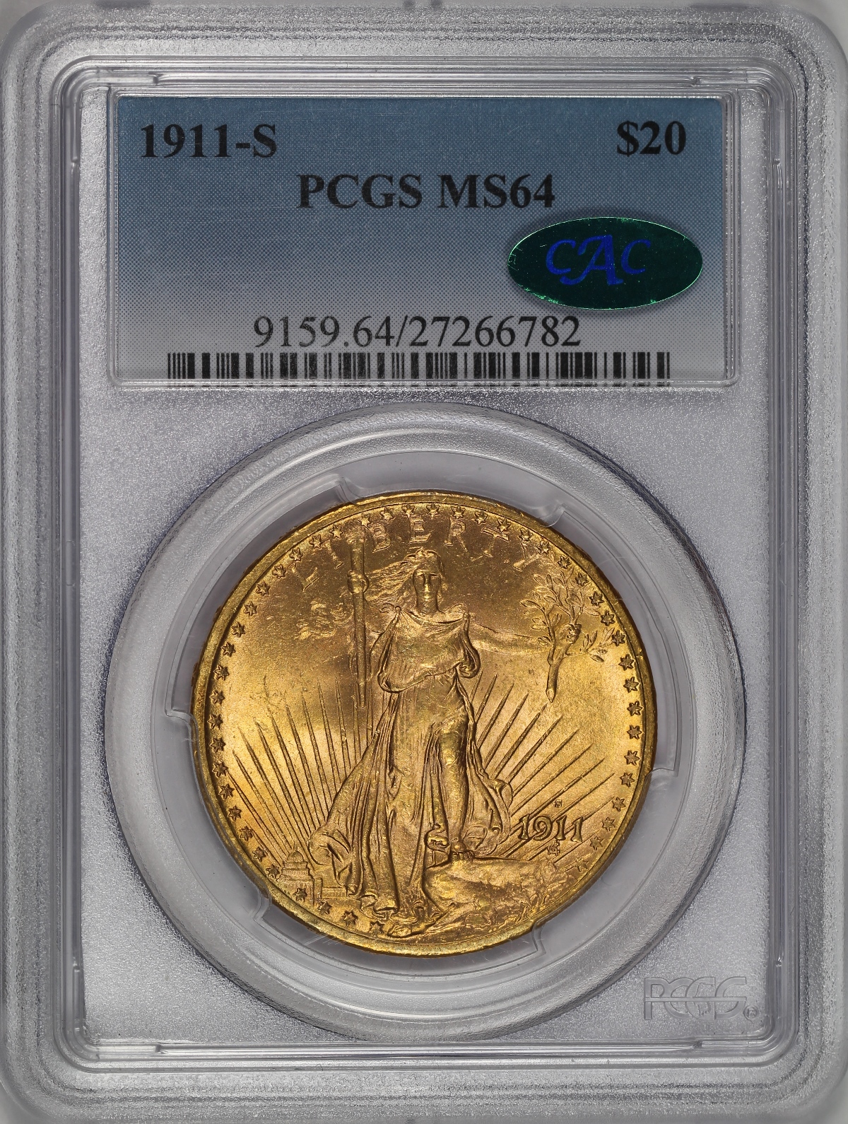 1911-S $20 St. Gaudens Gold PCGS MS64 CAC