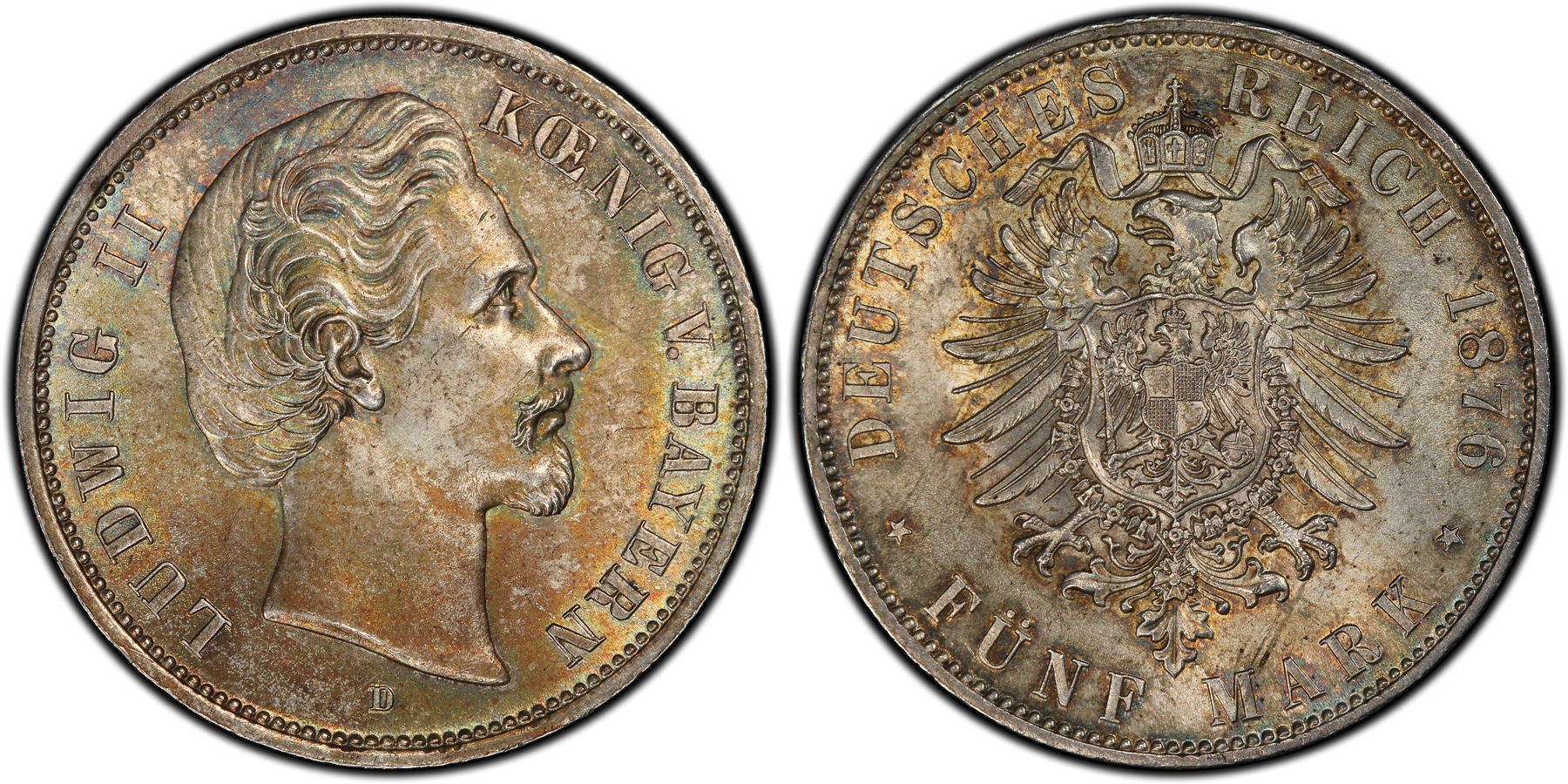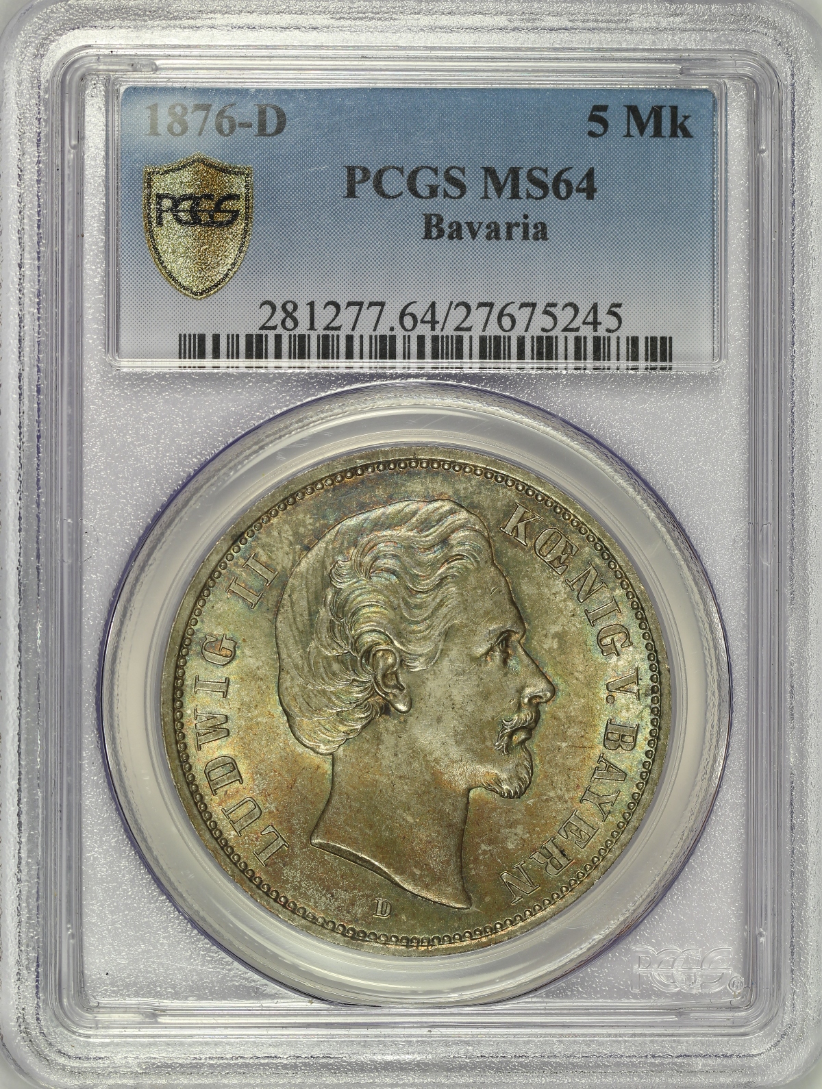 | 1876-D Germany-Bavaria 5 Mark PCGS MS64 |