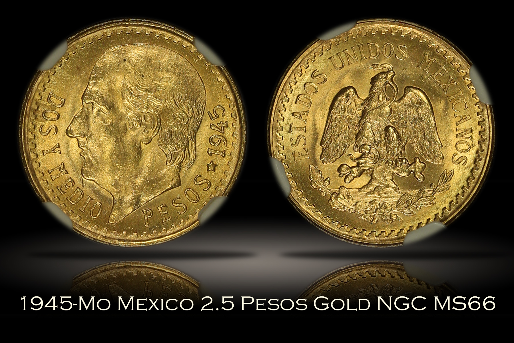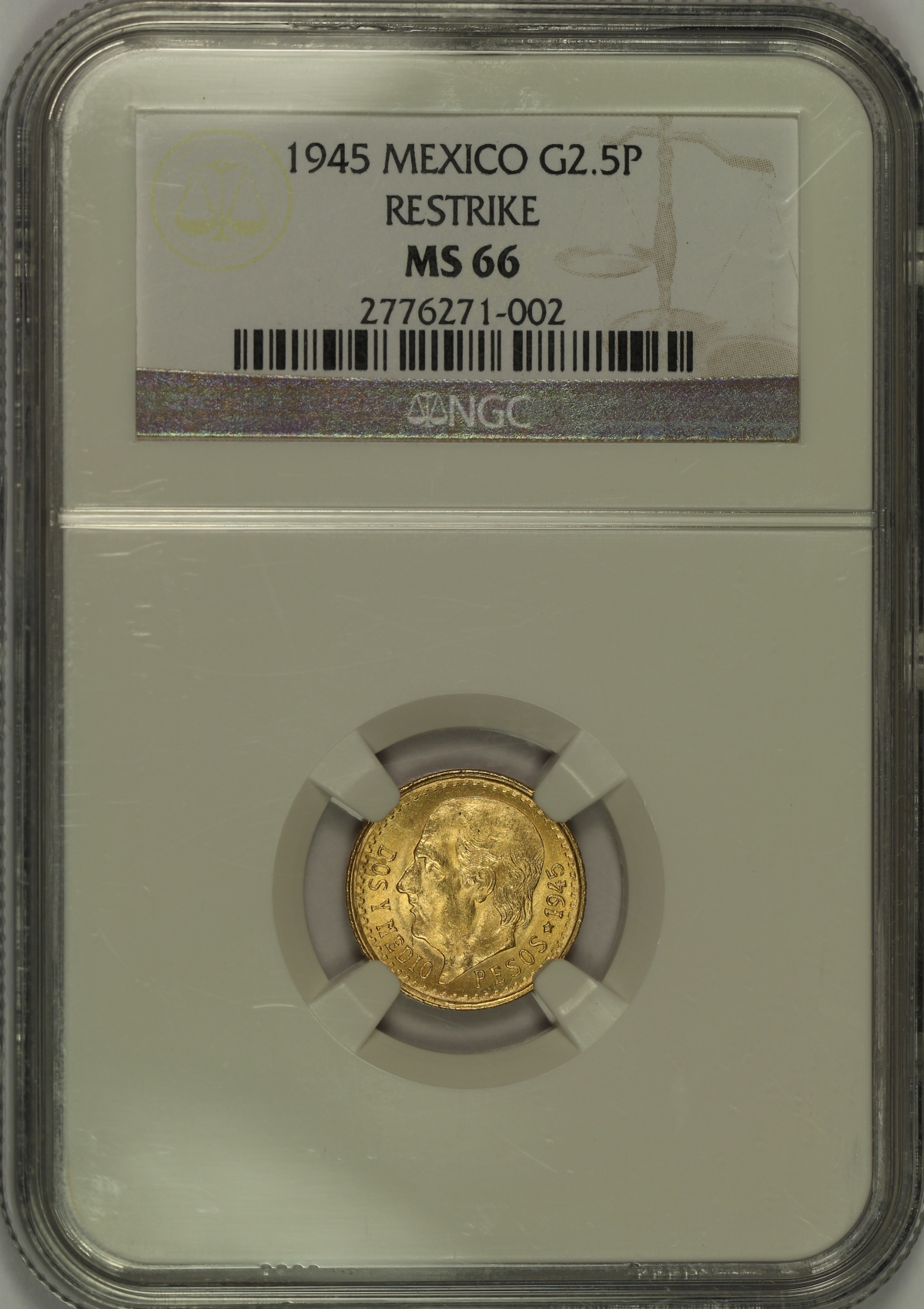 1945-Mo Mexico 2.5 Pesos Gold Restrike NGC MS66