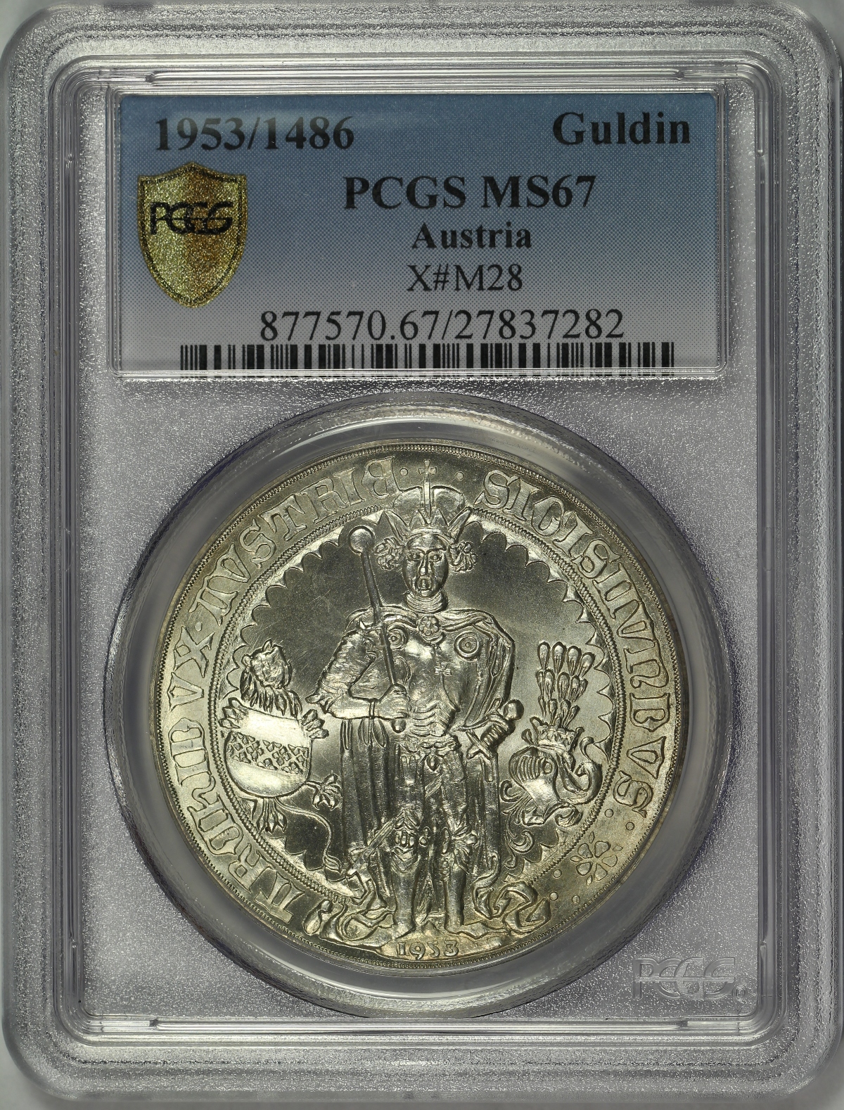 | 1486 Austria Guldiner PCGS MS67 (1953 Restrike) |