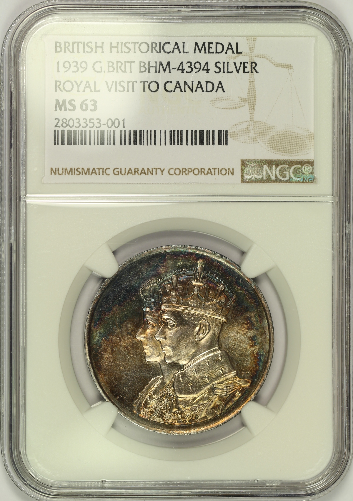 1939 Great Britain Royal Visit to Canada Medal NGC MS63