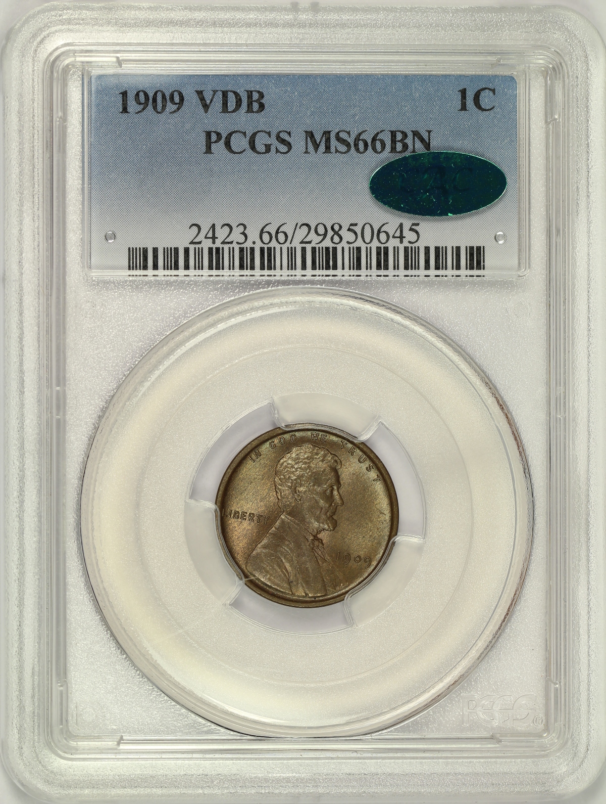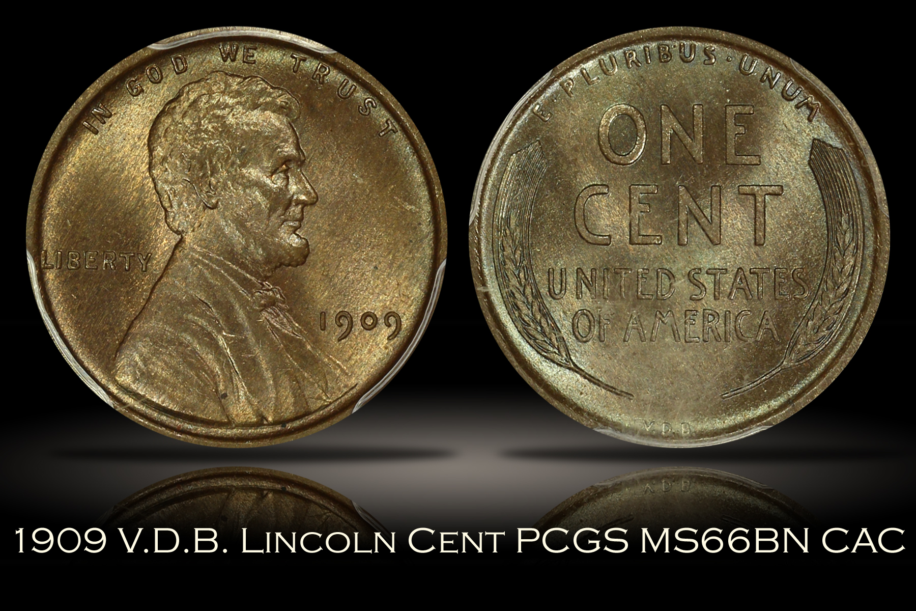 1909 V.D.B. Lincoln Cent PCGS MS66BN CAC