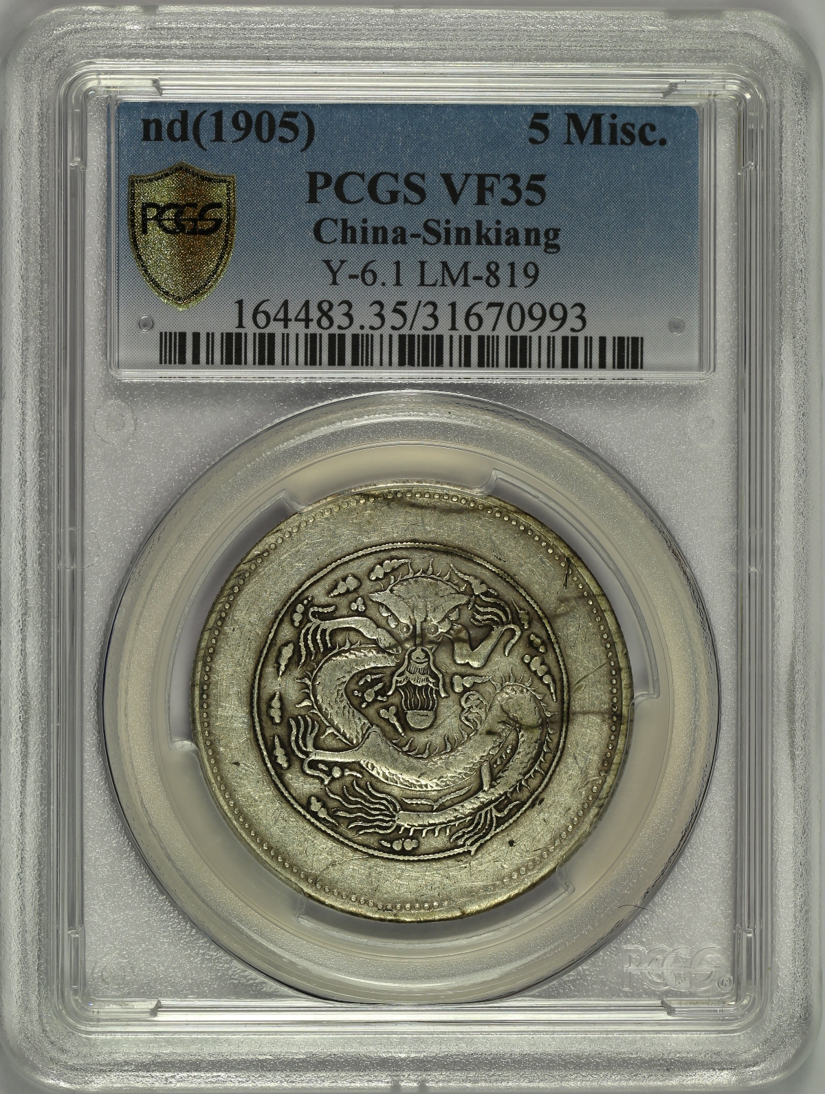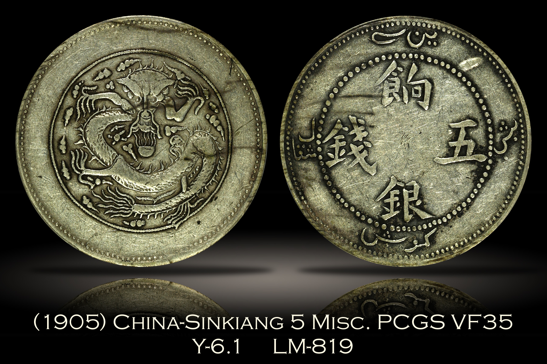 1905 China Sinkiang 5 Misc Y-6.1 LM-819 PCGS VF35