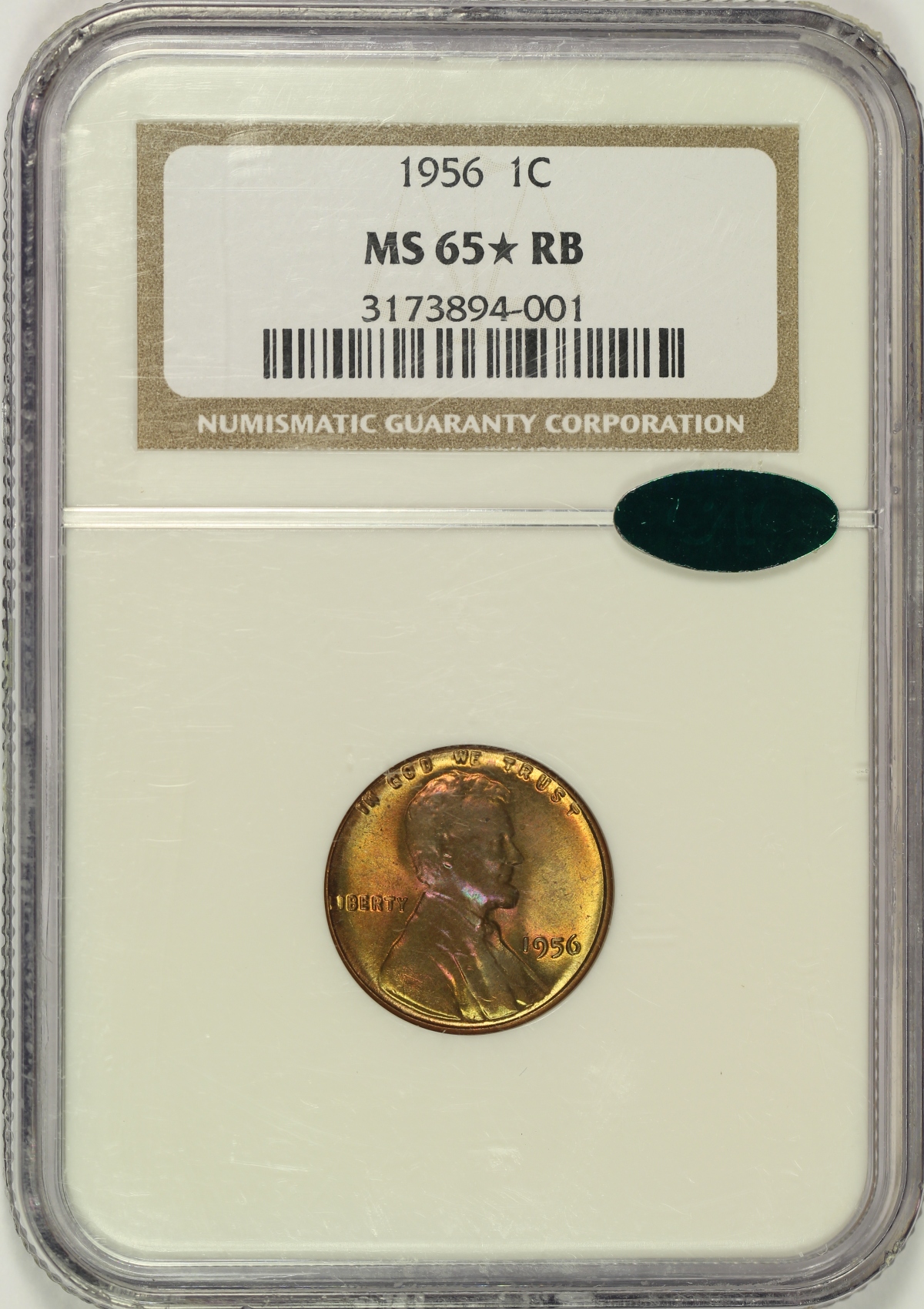 1956 Lincoln Wheat Cent NGC MS65*RB CAC