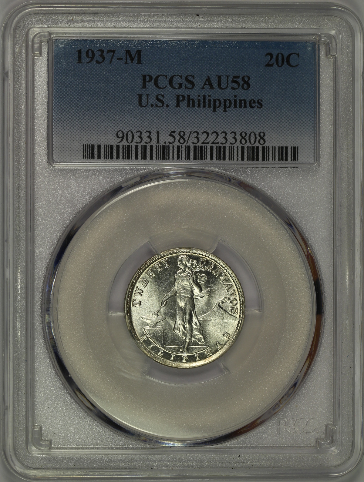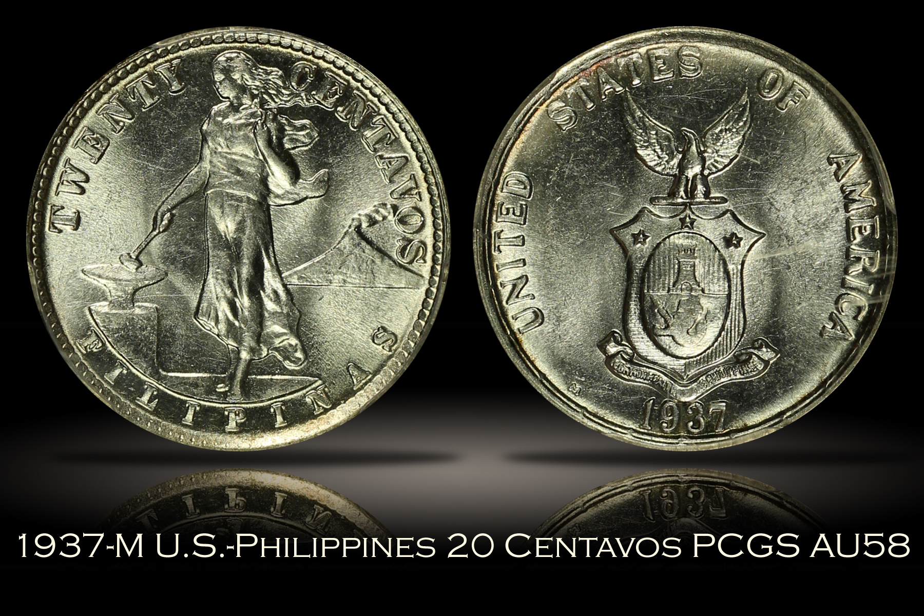 1937-M U.S.-Philippines 20 Centavos PCGS AU58 |
