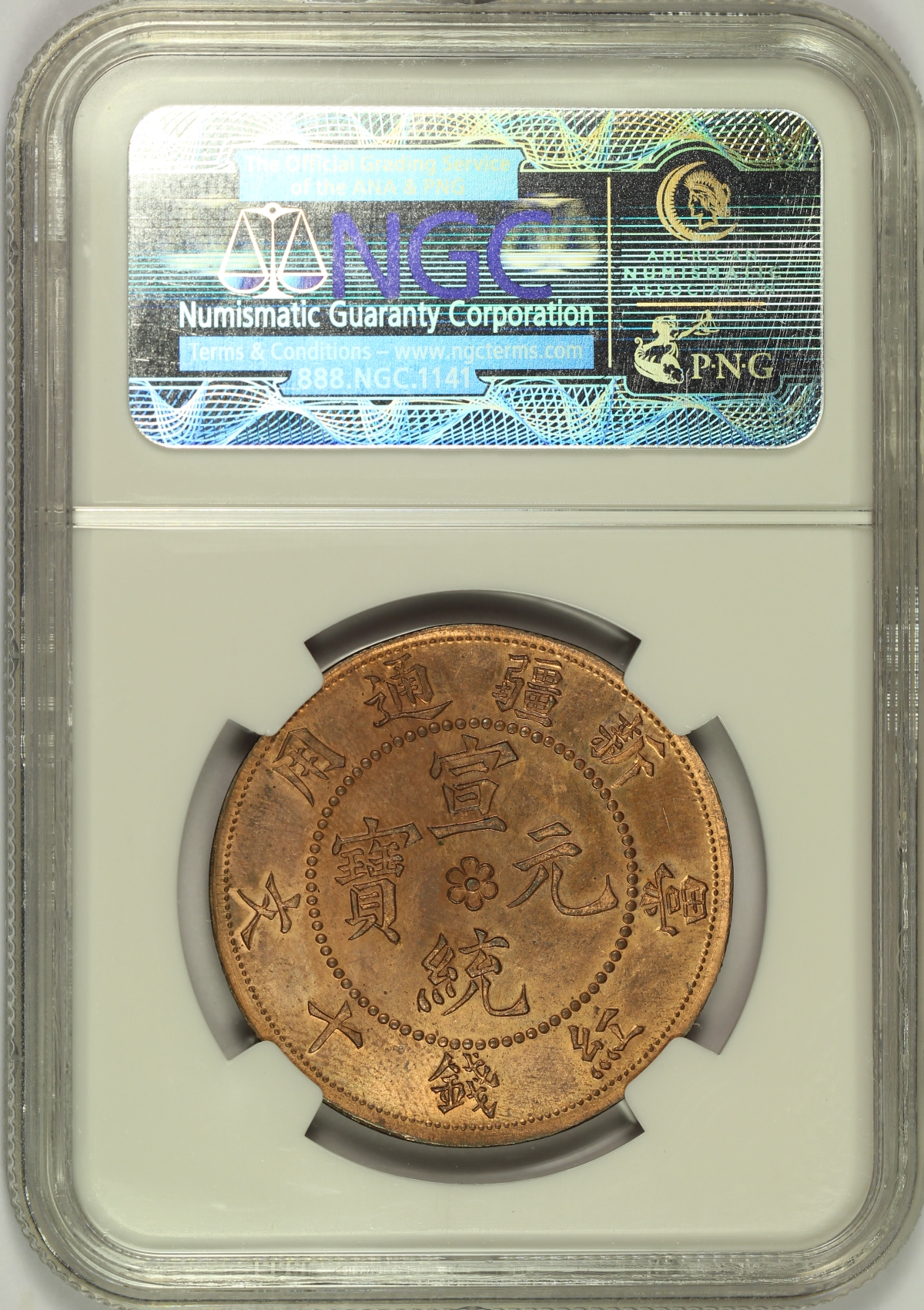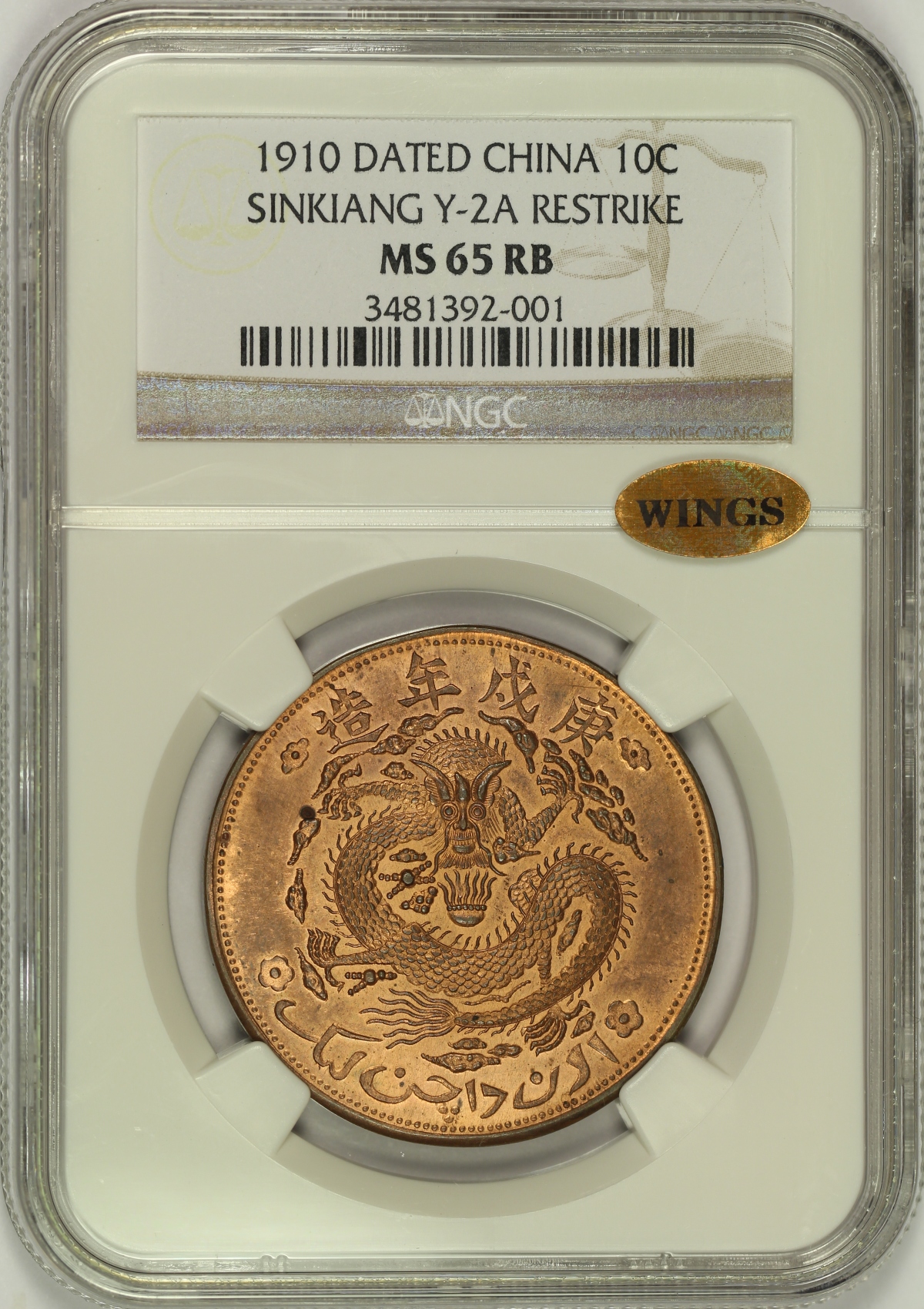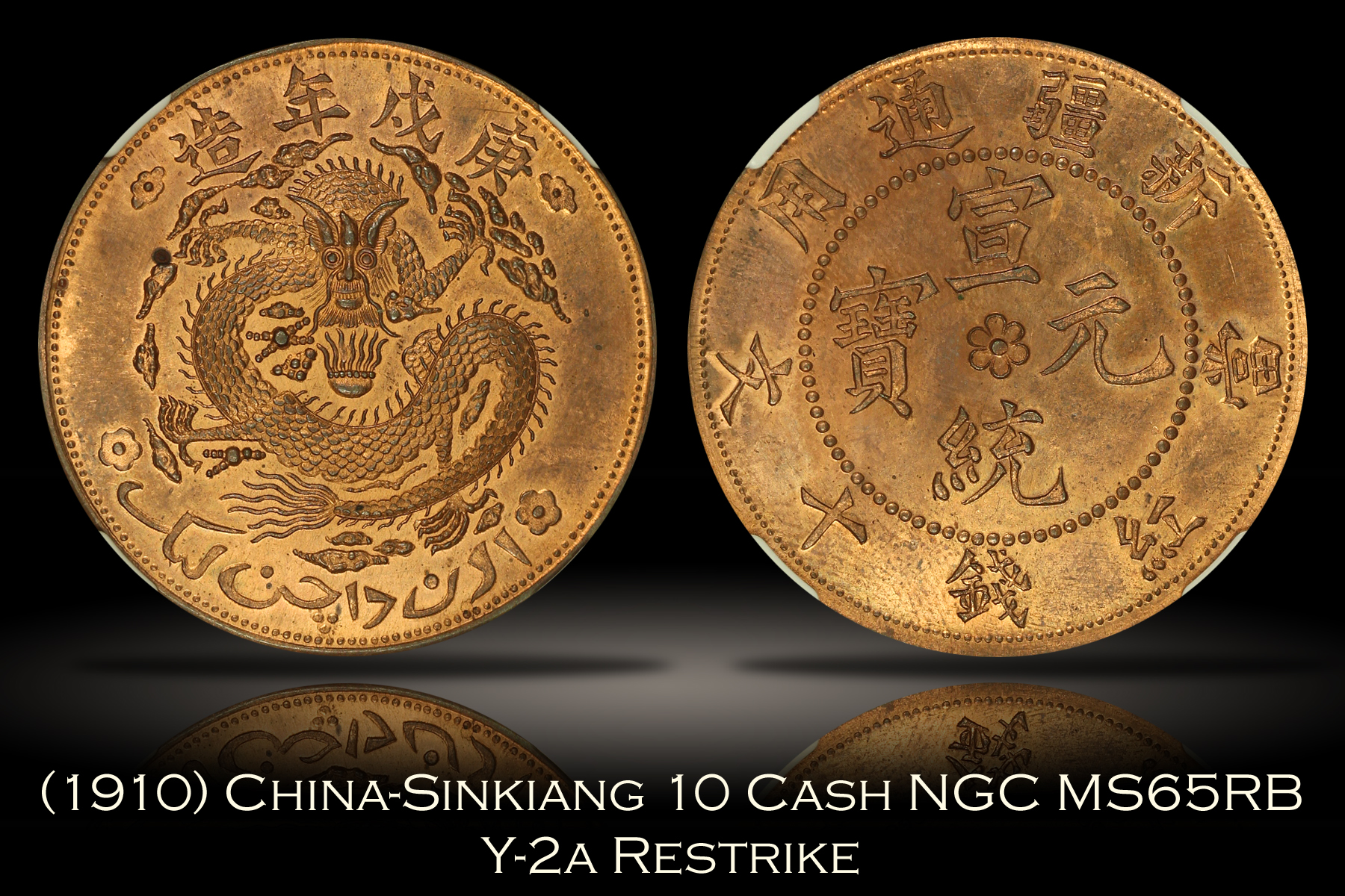 (1910) China-Sinkiang 10 Cash Restrike NGC MS65RB Wings