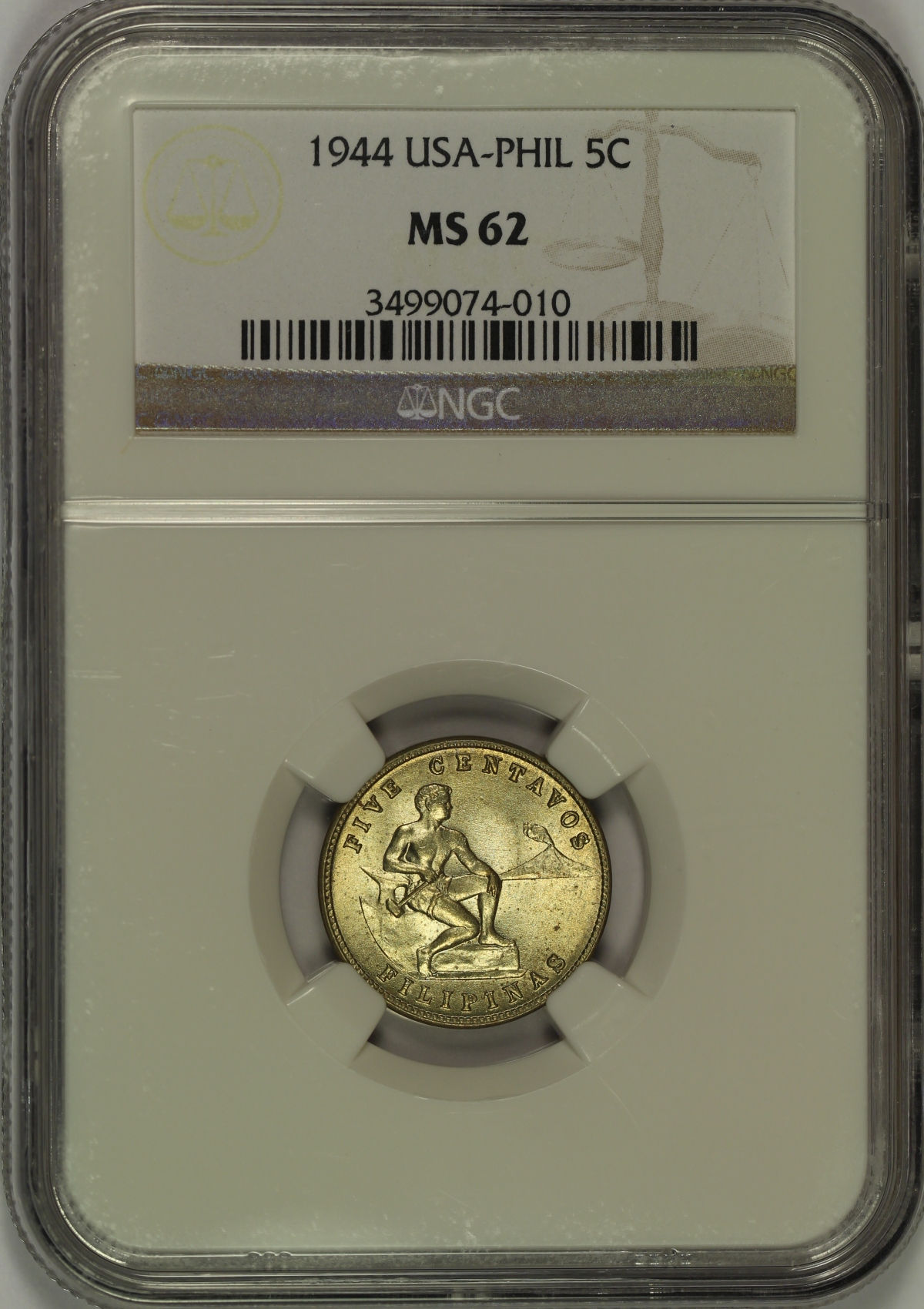 1944 U.S.-Philippines 5 Centavos NGC MS62 |