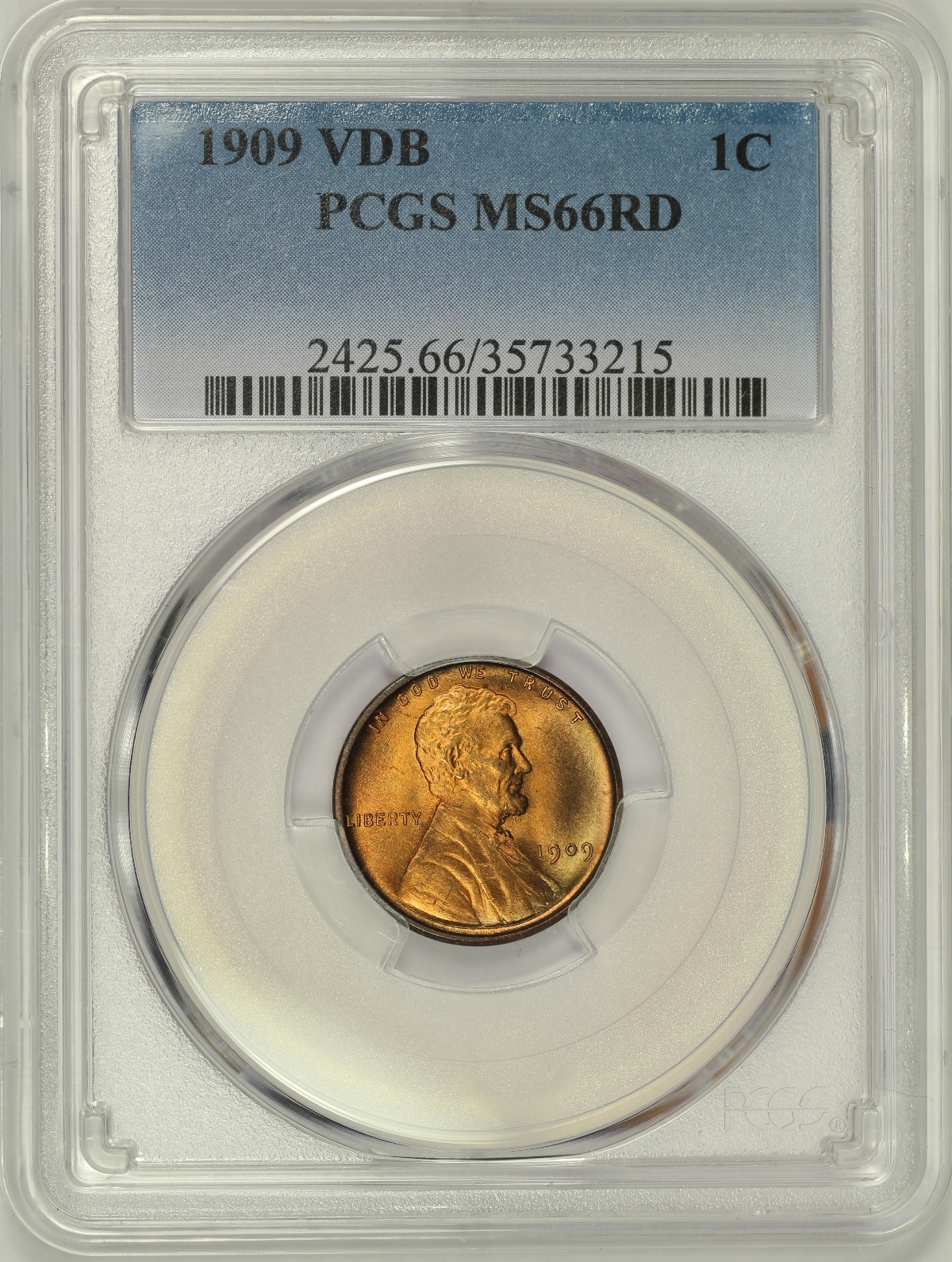 1909 V.D.B. Lincoln Cent PCGS MS66RD