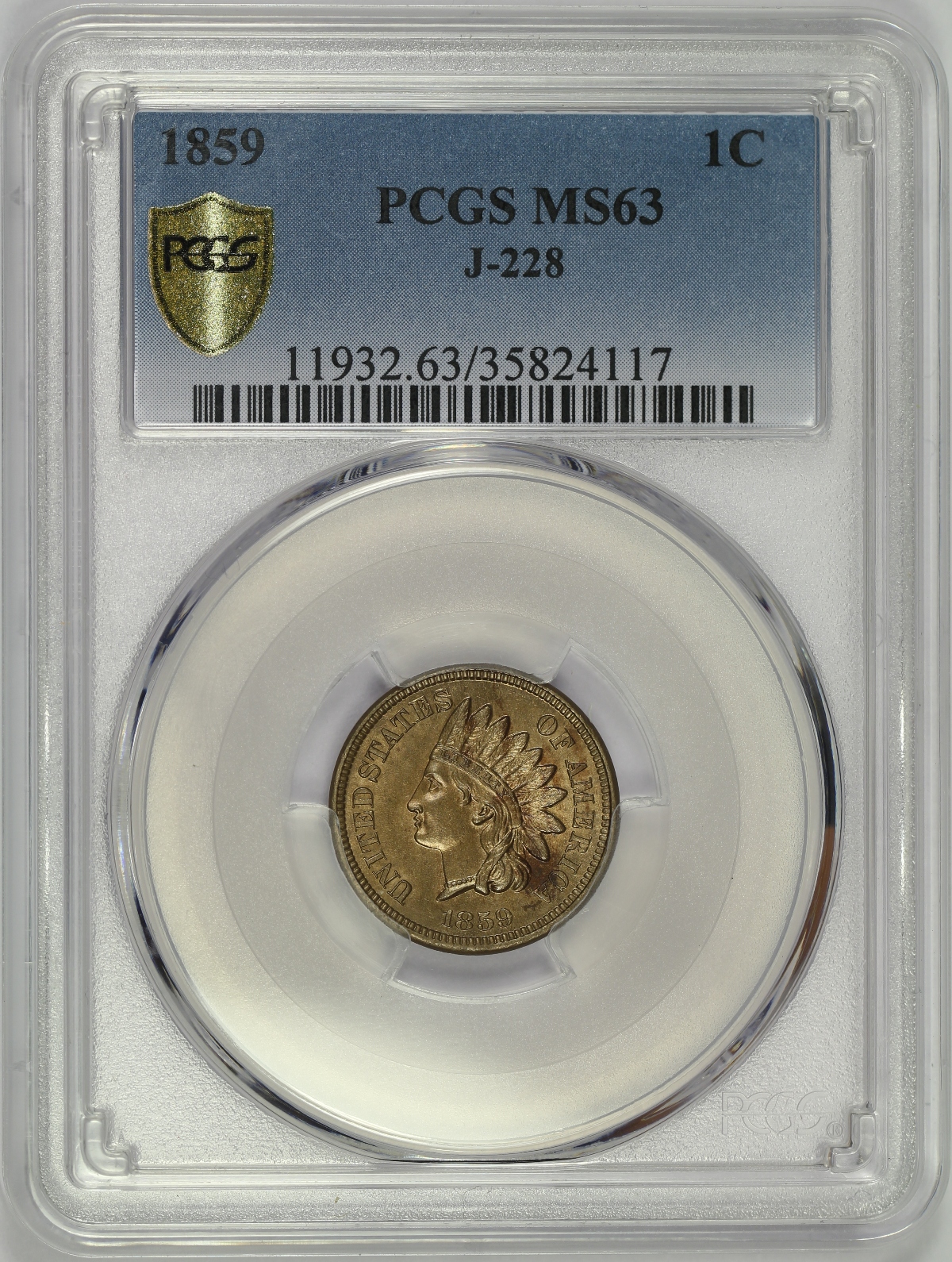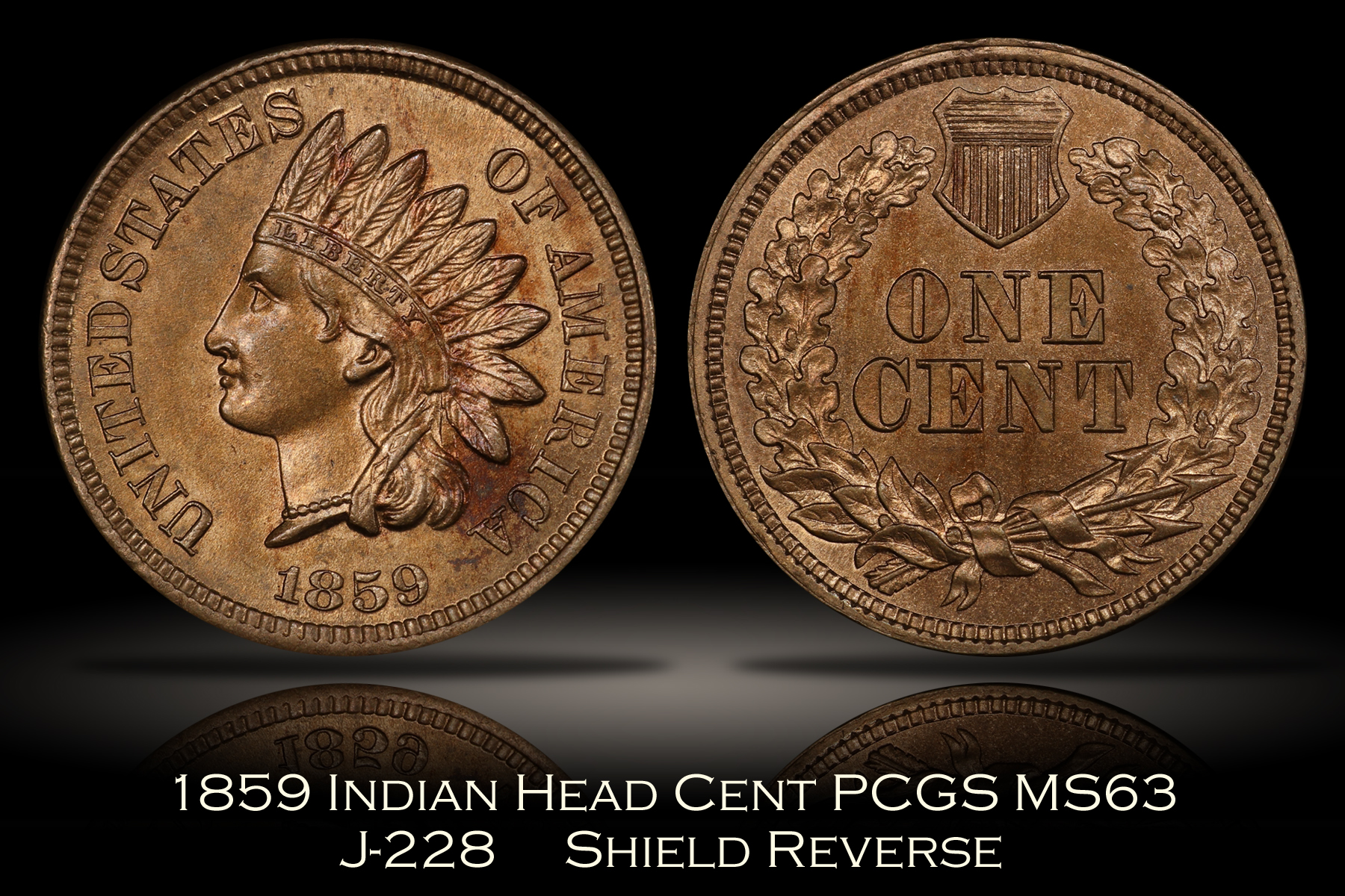 1859 Shield Reverse J-228 Indian Head Cent PCGS MS63