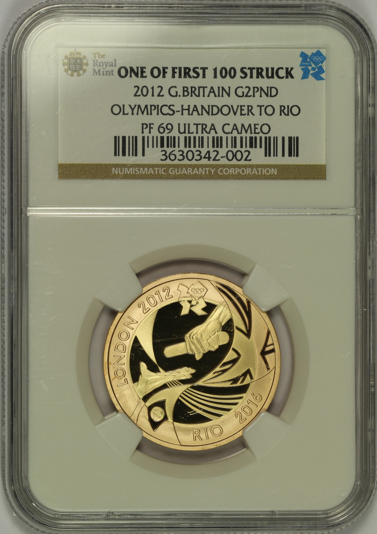 2012 Great Britain £2 Gold London Olympics Handover to Rio NGC PF69UC
