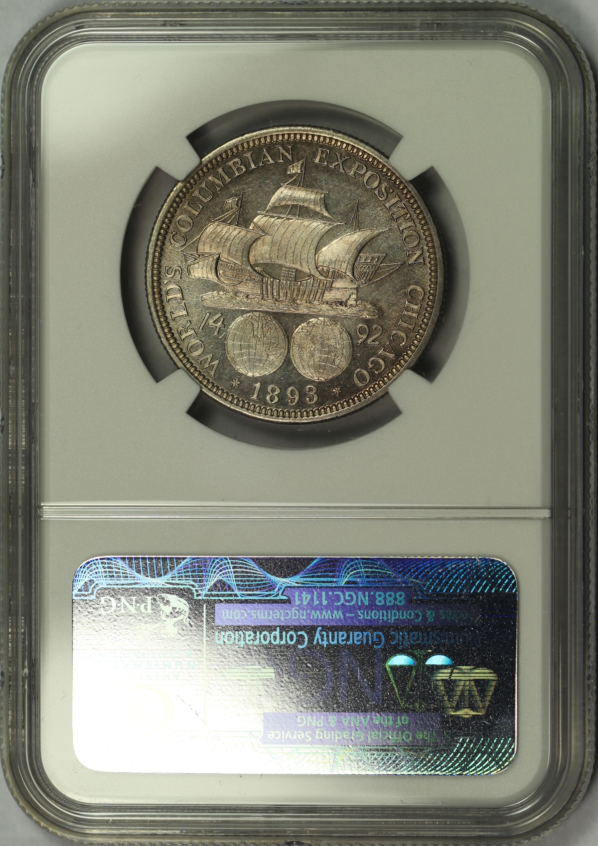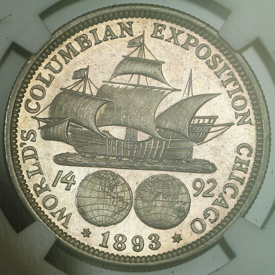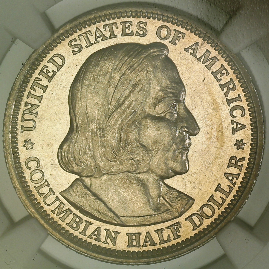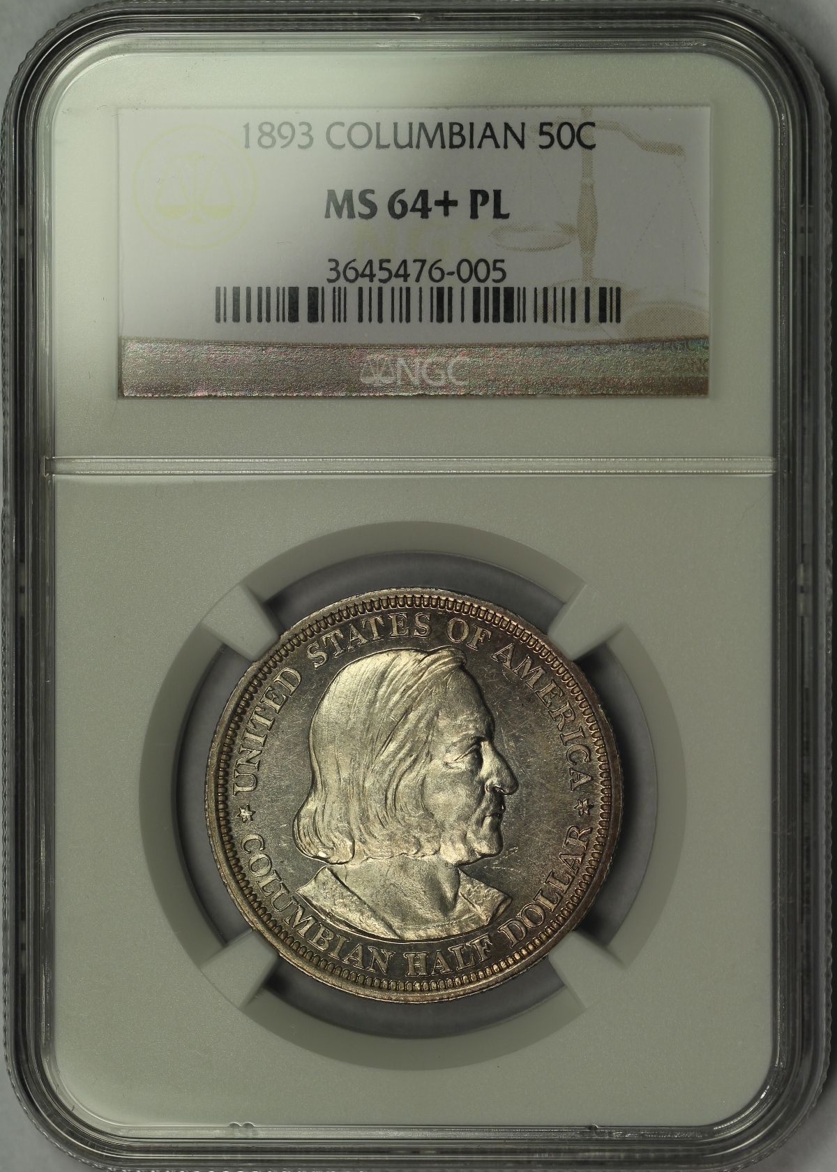 | The World's Columbian Exposition Commemorative Half Dollars are widely accepted as the first U.S. commemorative and the first in the widely collected classic commemorative series. However, some argue that the 1848 CAL. quarter eagles were really the first U.S. commemoratives. The Columbian Exposition Half Dollars were also the first United States coin of regular issue to depict an actual historical person, Christopher Columbus. The silver used to coin many of the Columbian Half Dollars came from the melting of then uncurrent coins which were pulled from circulation and held by the Treasury, many of which were half dimes last minted in 1873. The Columbian Half Dollars were minted for two years, 1892 and 1893. This example is an 1893 Columbian Half Dollar which has been graded NGC MS64+PL and is encapsulated in one of the newer-style edge-view holders. The proof-like designation assigned to this coin is well-deserved and somewhat rare to find on any of the classic commemoratives. This coin is amazingly proof-like with very reflective mirror-like fields and frosty devices. I have provided alternate photos of the coin taken under direct light in an attempt to better show the reflective fields. The coin is almost completely bright white and has amazing luster. The grade of MS64+ assigned to this coin is a bit conservative at first look as the coin is very well struck and has no major issues. Unfortunately, the proof-like fields seem to magnify every tiny mark that would otherwise be hidden on a regular example and may explain the relatively low numerical grade as the coin has the look of a coin grading higher. Because of the difficulty in capturing the overall look of the coin in a single image or even a few images, I have also included a short high-definition video of the coin in an attempt to give you a better idea of what this coin will look like in hand. Please note that you may need to adjust the video quality to 1080p and may need to increase the size of the video to full screen in order to see the coin in maximum detail. This Columbian Half is one that certainly grabs the attention of just about everyone that sees it
