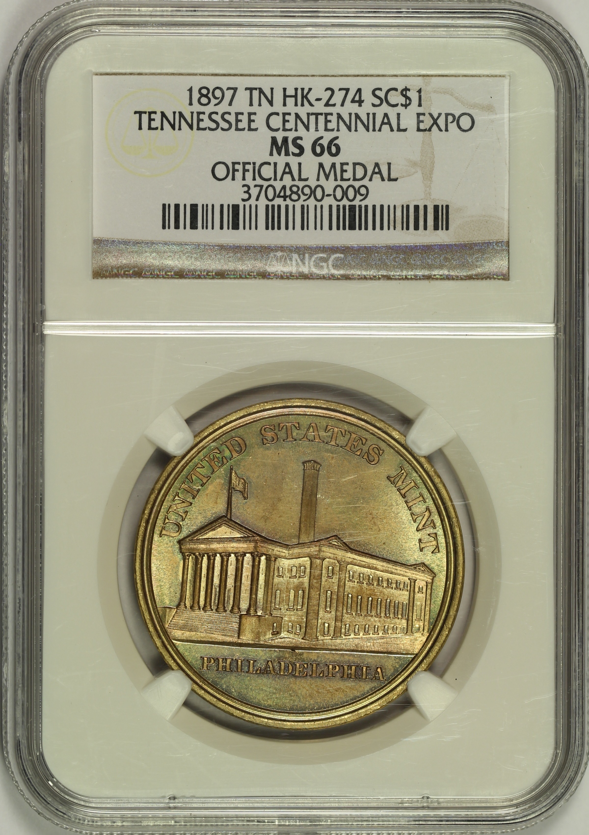 | 1897 Tennessee Centennial Expo Medal HK-274 NGC MS66 |