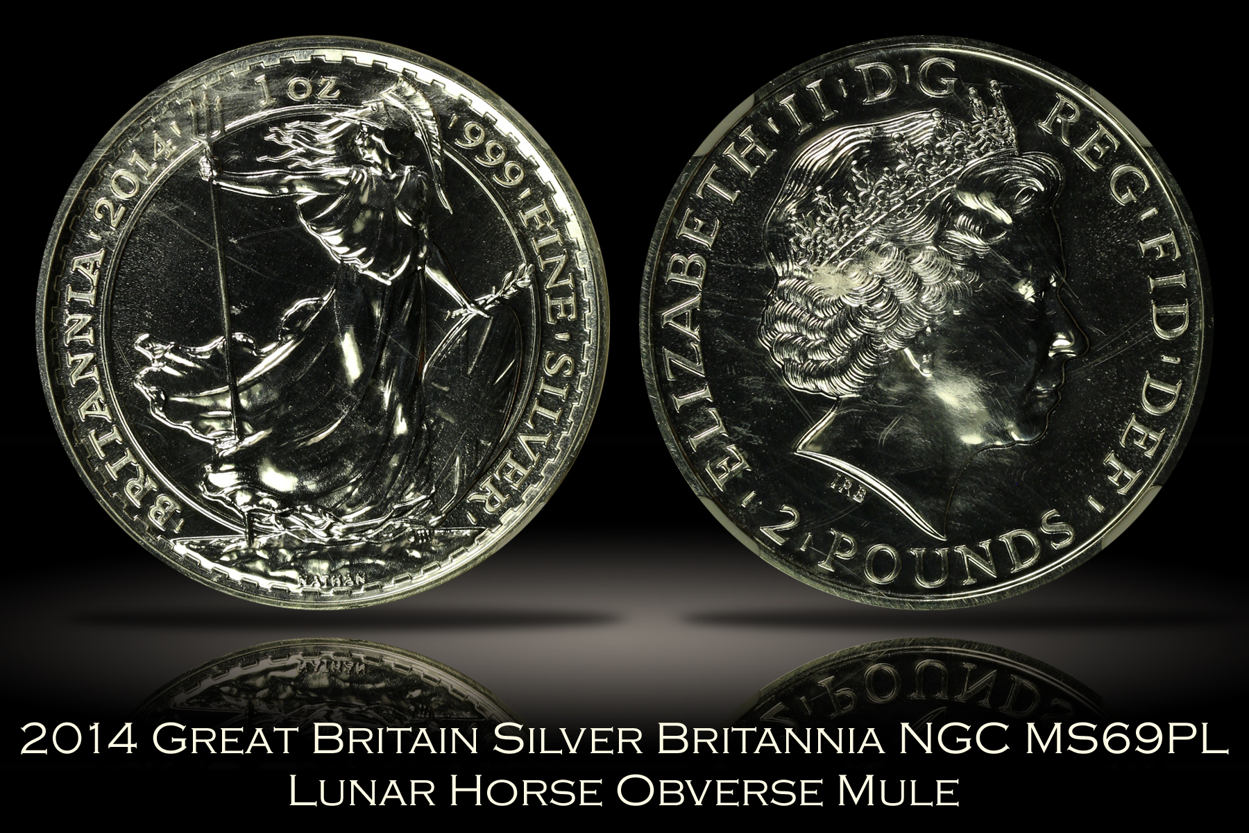 2014 Great Britain Britannia Lunar Horse Mule NGC MS69PL