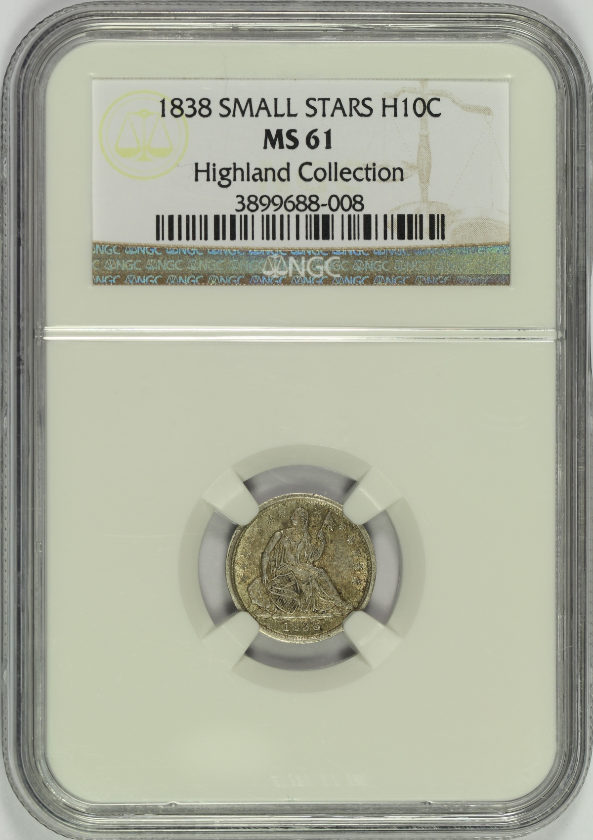 | 1838 Small Stars Seated Half Dime NGC MS61 |