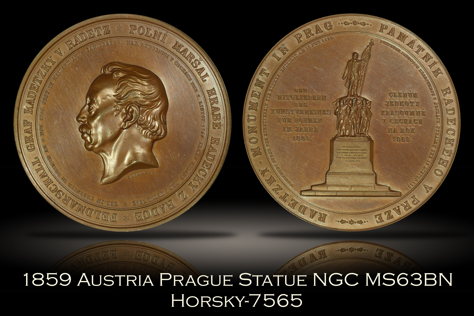 1859 Austria Statue in Prague Bronze Medal Horsky-7565 NGC MS63BN |