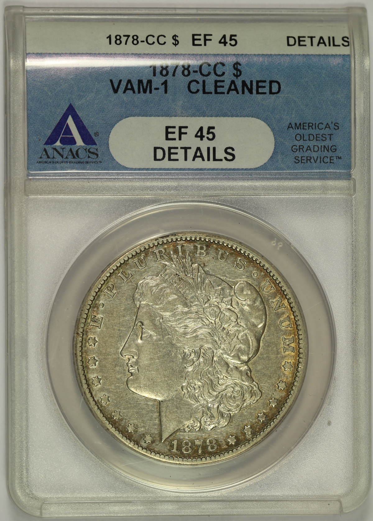 | 1878-CC Morgan Dollar VAM-1 ANACS XF45 Details |