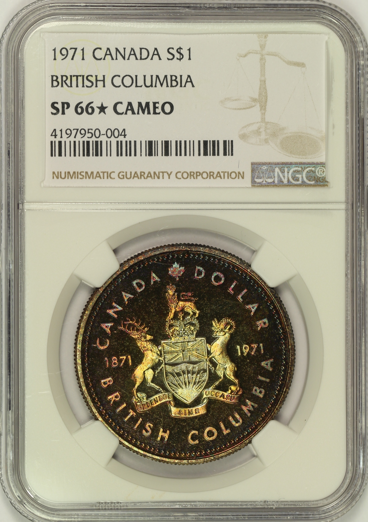 1971 Canada British Columbia Silver Dollar NGC SP66* Cameo