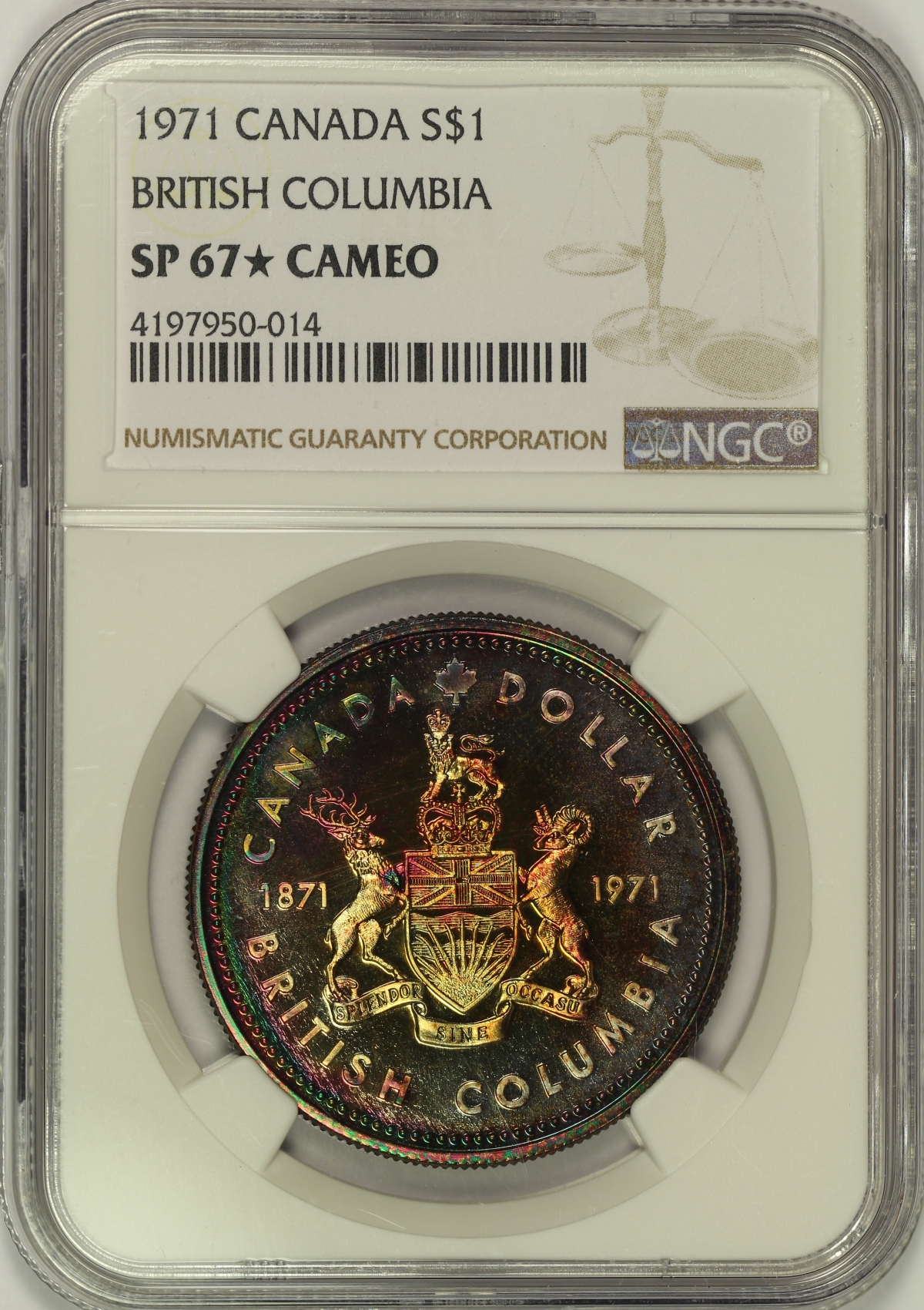 1971 Canada British Columbia Silver Dollar NGC SP67* Cameo