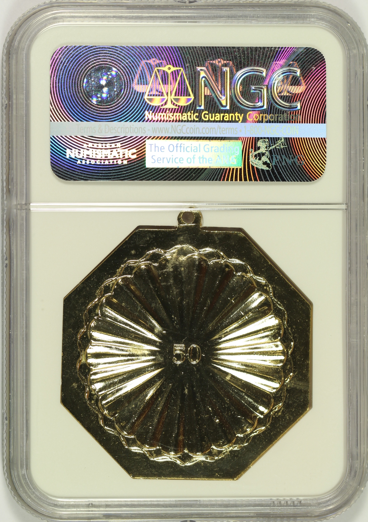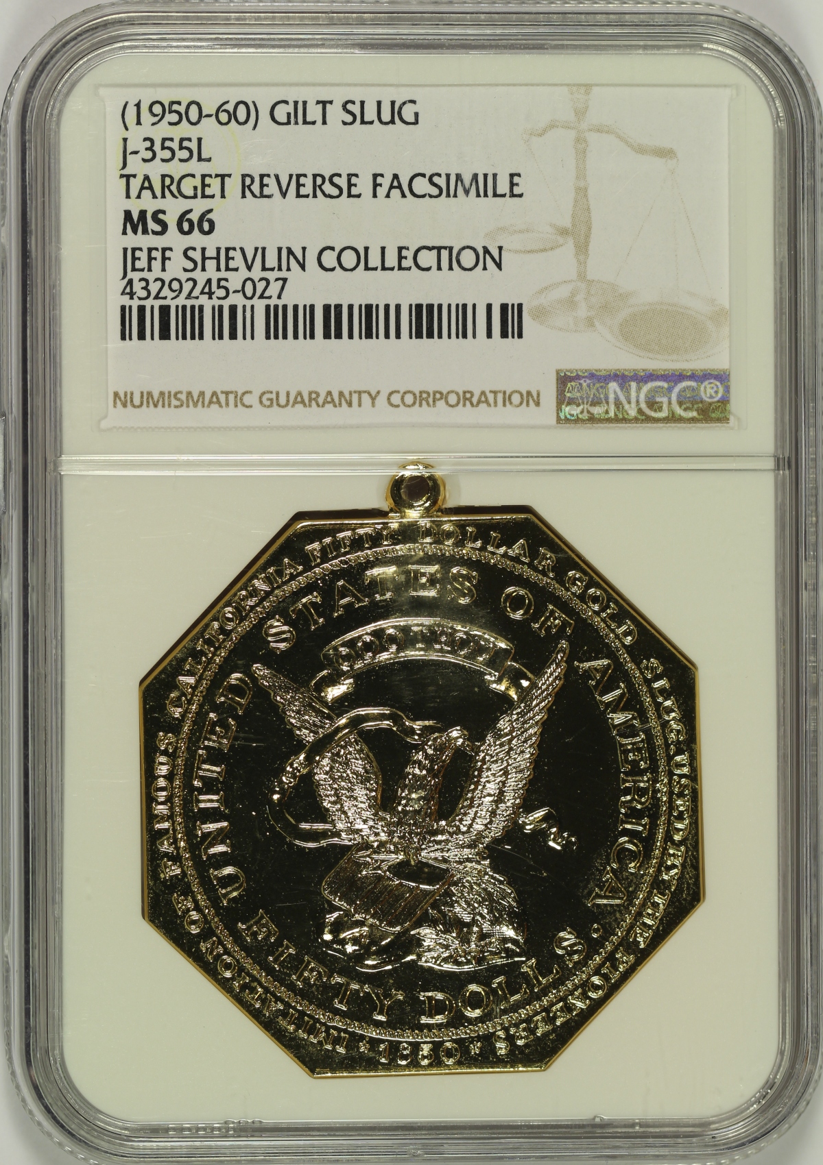 (1950-60) $50 Gilt Slug Target Reverse Facsimile NGC MS66