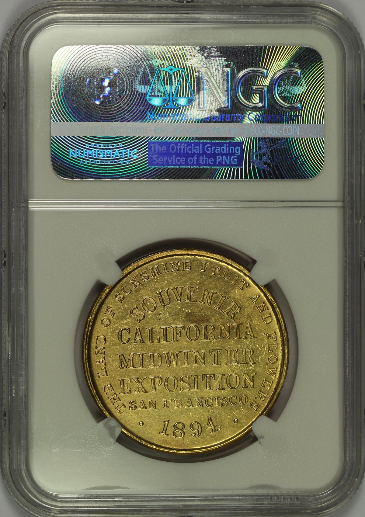 | 1894 California Midwinter Exposition Gilt Official Medal HK-245A NGC MS62 |