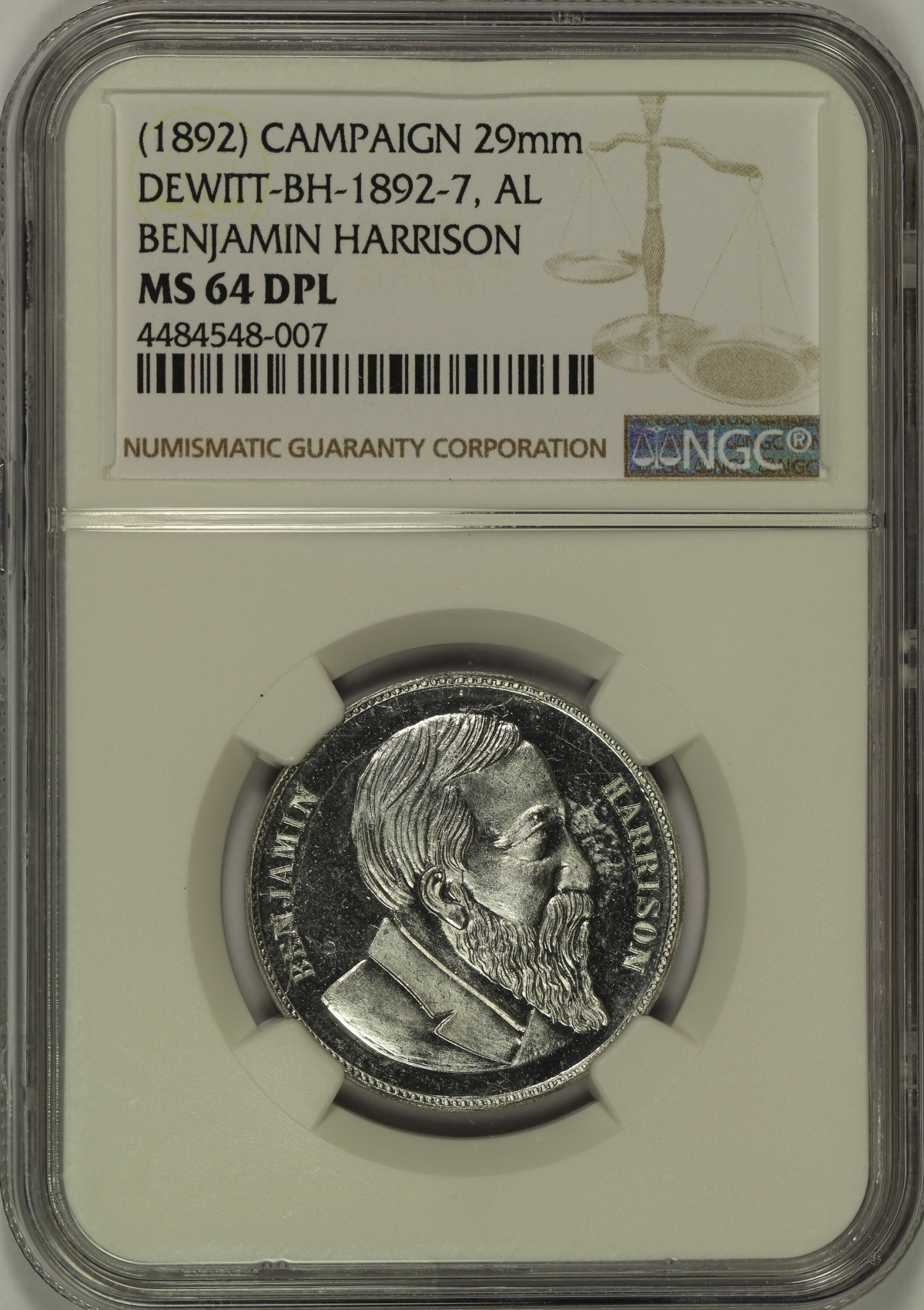 1892 Benjamin Harrison Campaign Token DeWitt BH-1892-7 NGC MS64DPL