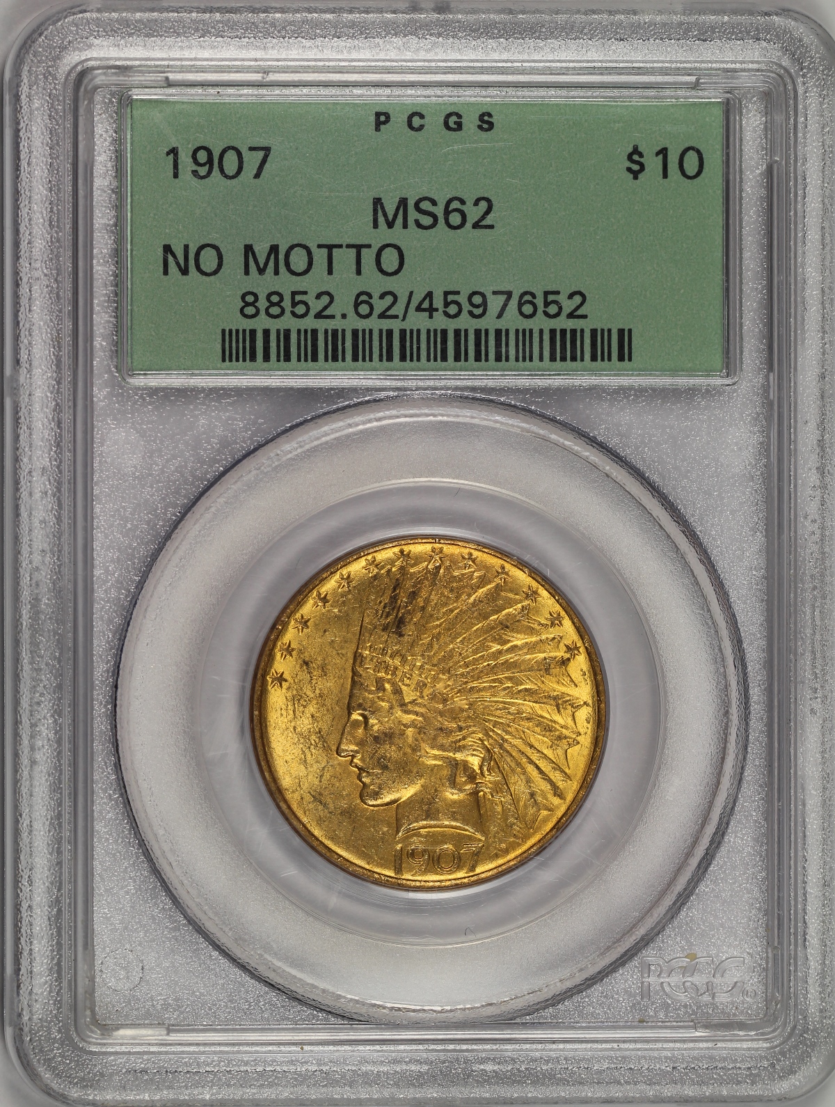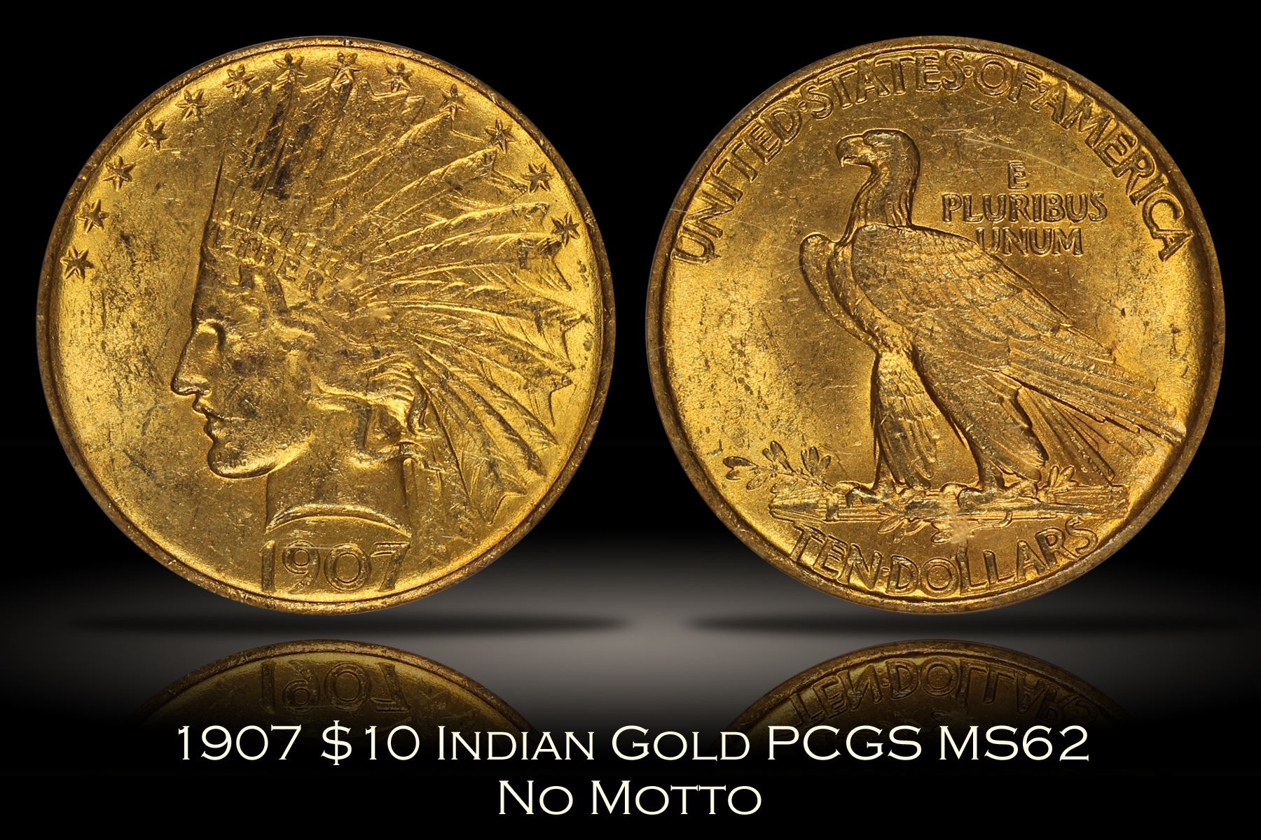 1907 $10 Indian Gold No Motto PCGS MS62 OGH |