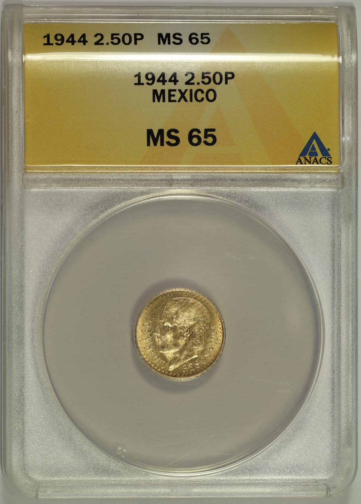 | 1944-Mo Mexico 2.5 Pesos Gold ANACS MS65 |