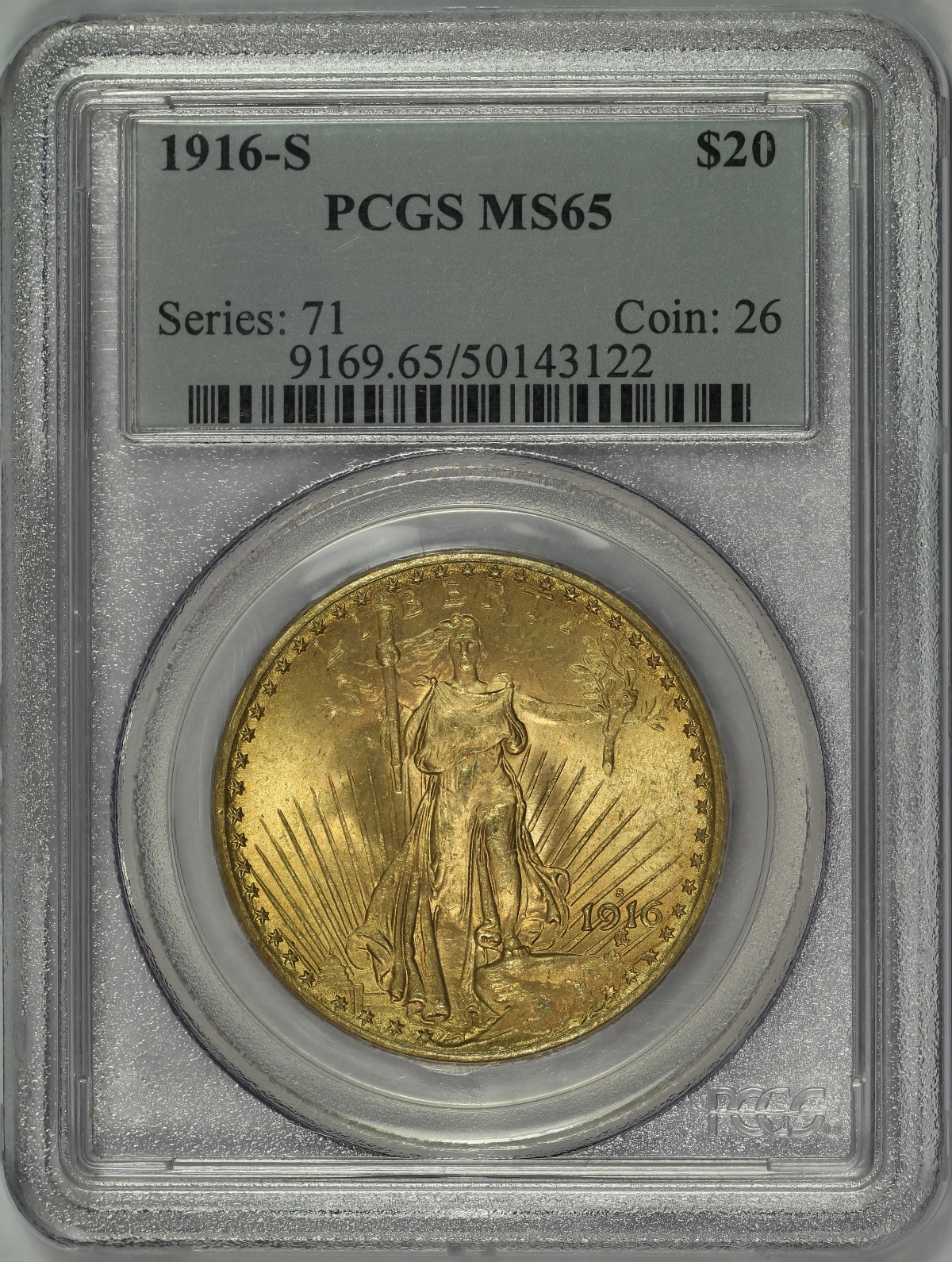| 1916-S $20 St. Gaudens Gold PCGS MS65 |