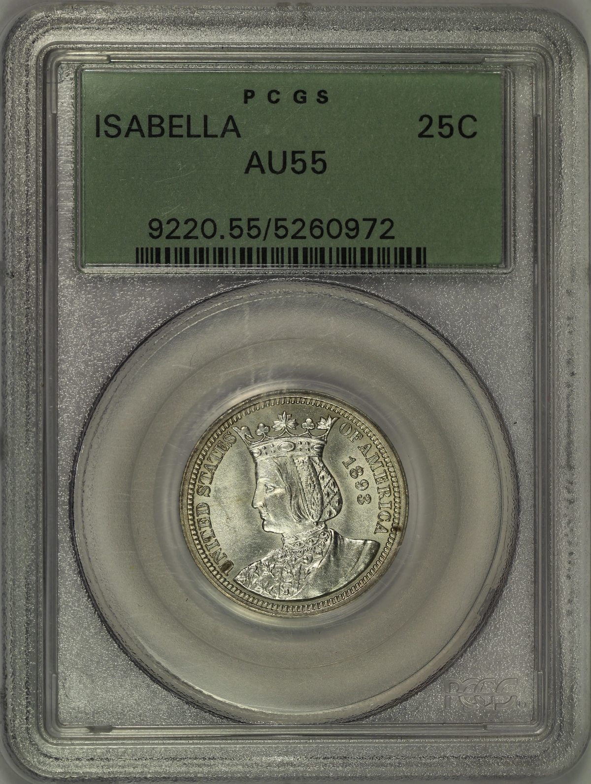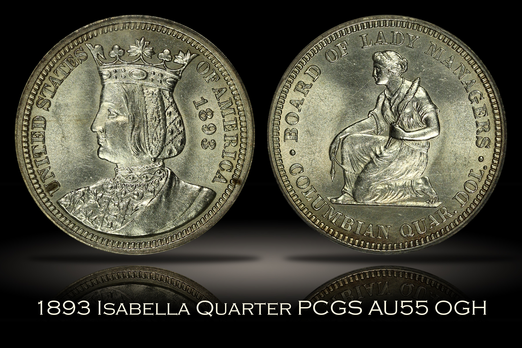 1893 Columbian Expo Isabella Commemorative Quarter PCGS AU55 OGH