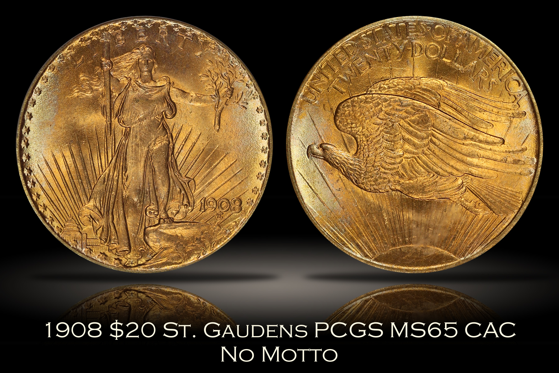 1908 $20 No Motto St. Gaudens Gold PCGS MS65 CAC