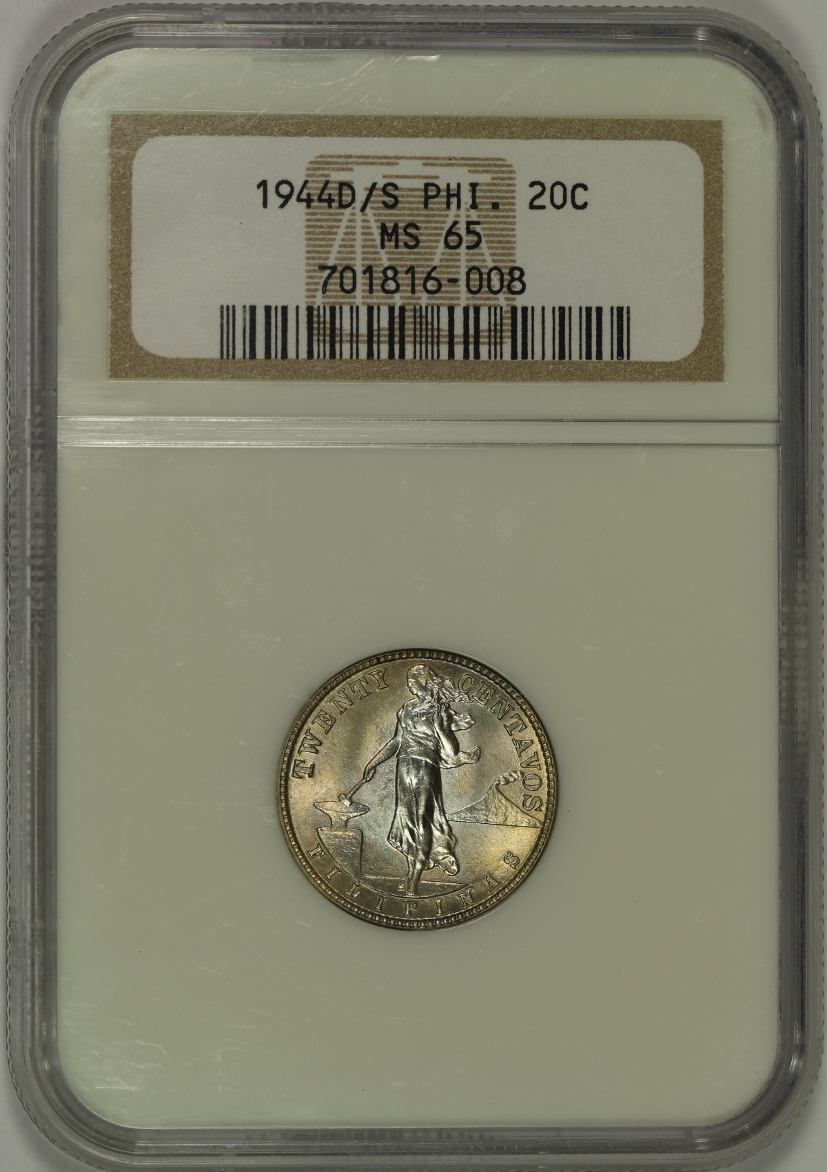 | 1944-D/S U.S.-Philippines 20 Centavos NGC MS65 Allen 12.04a |