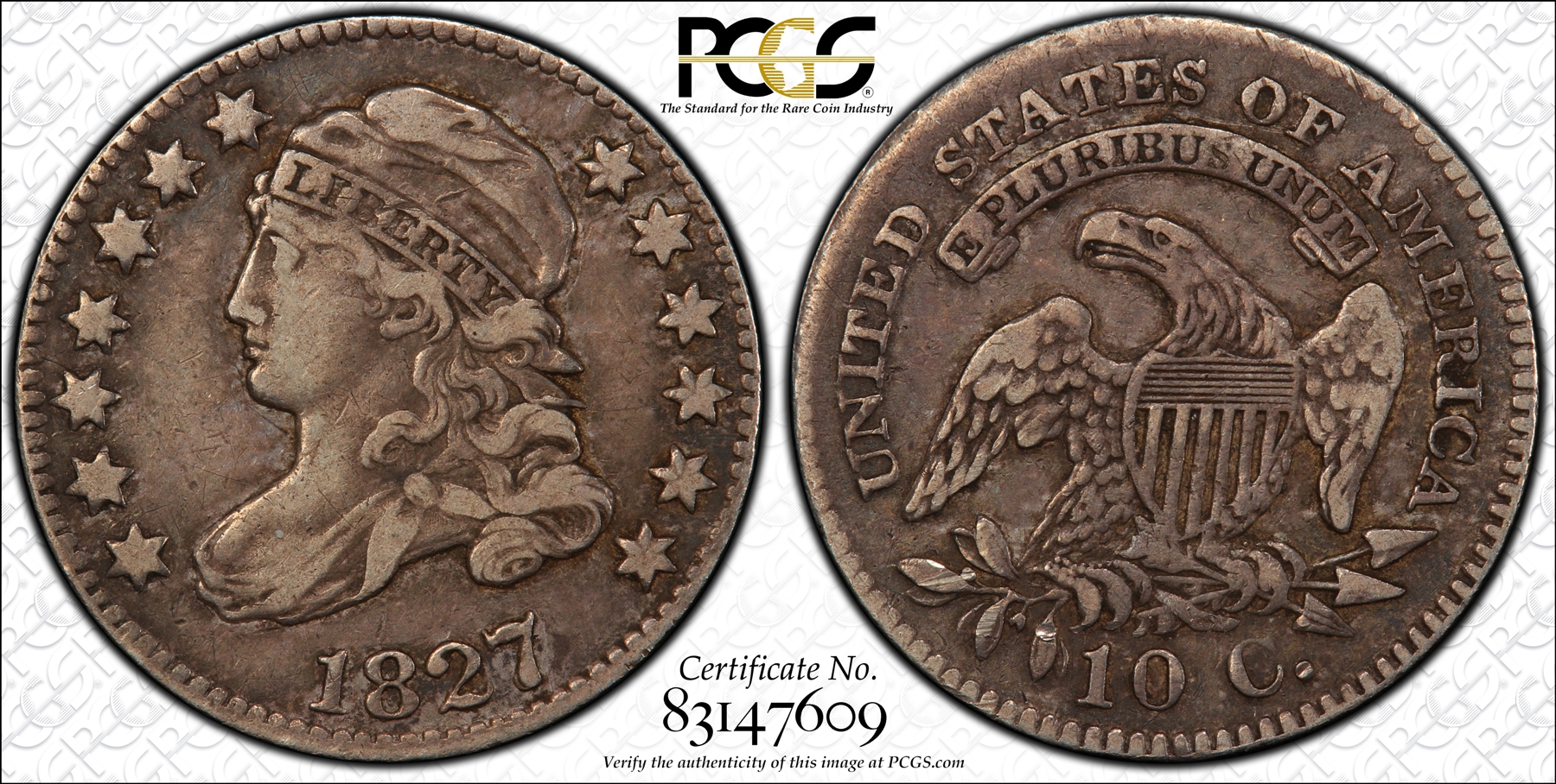 1827/7 Bust Dime JR-1 PCGS VF35 |