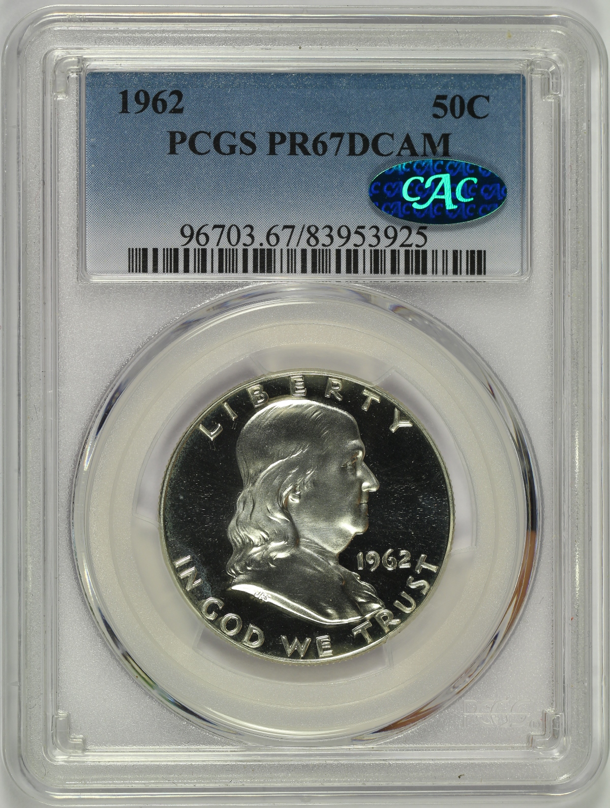 1962 Franklin Half Dollar PCGS PR67DCAM CAC