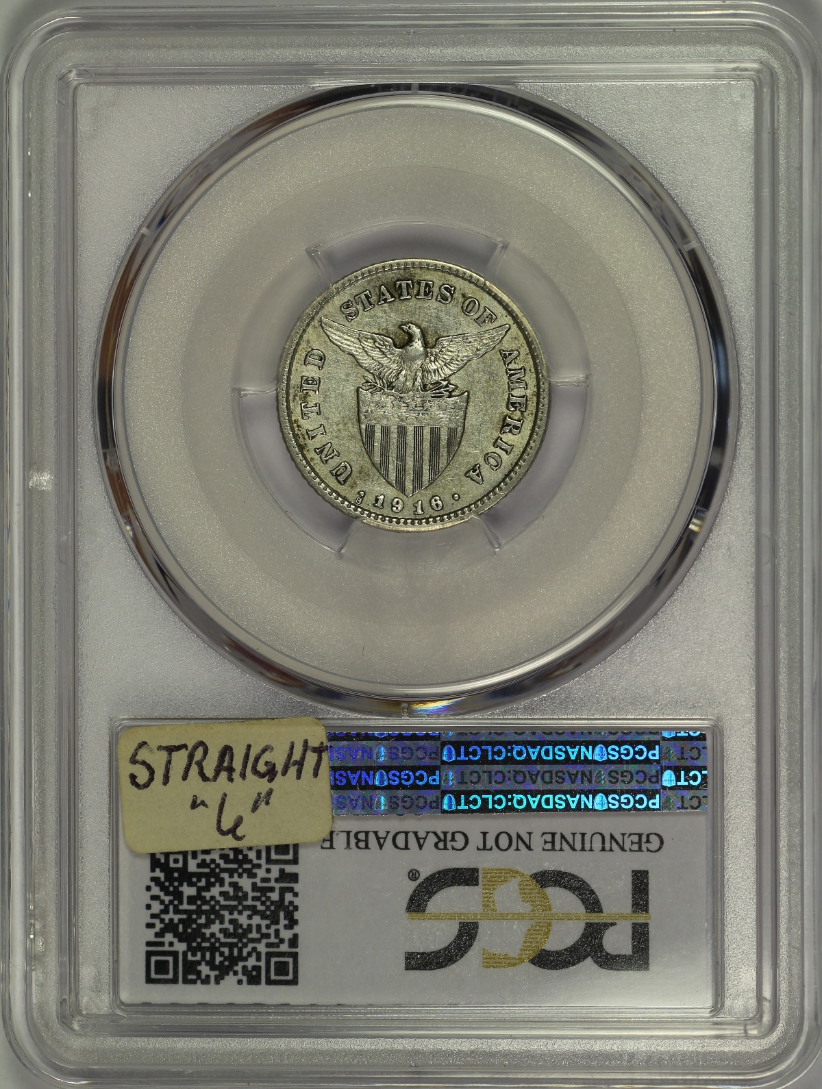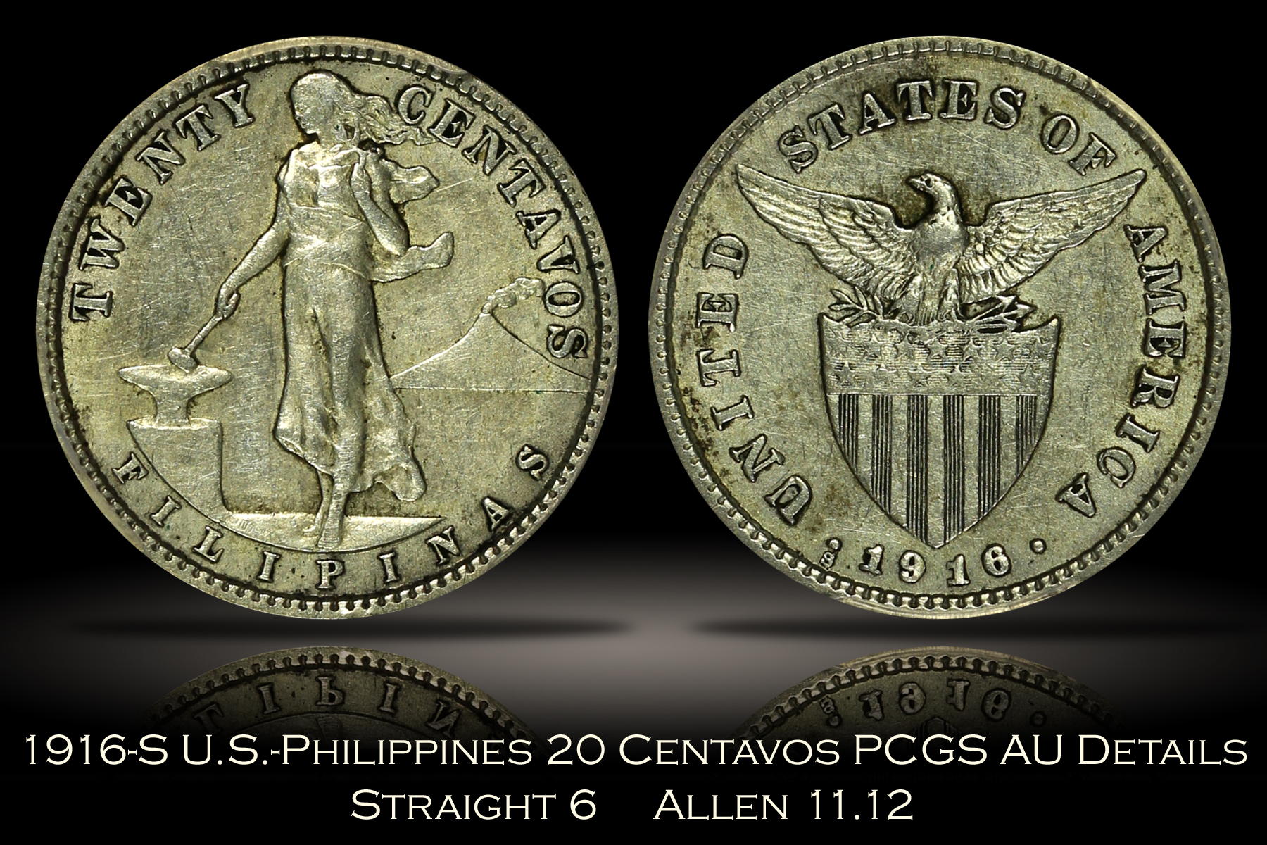 1916-S U.S.-Philippines 20 Centavos Straight 6 Allen 11.12 PCGS AU Details |