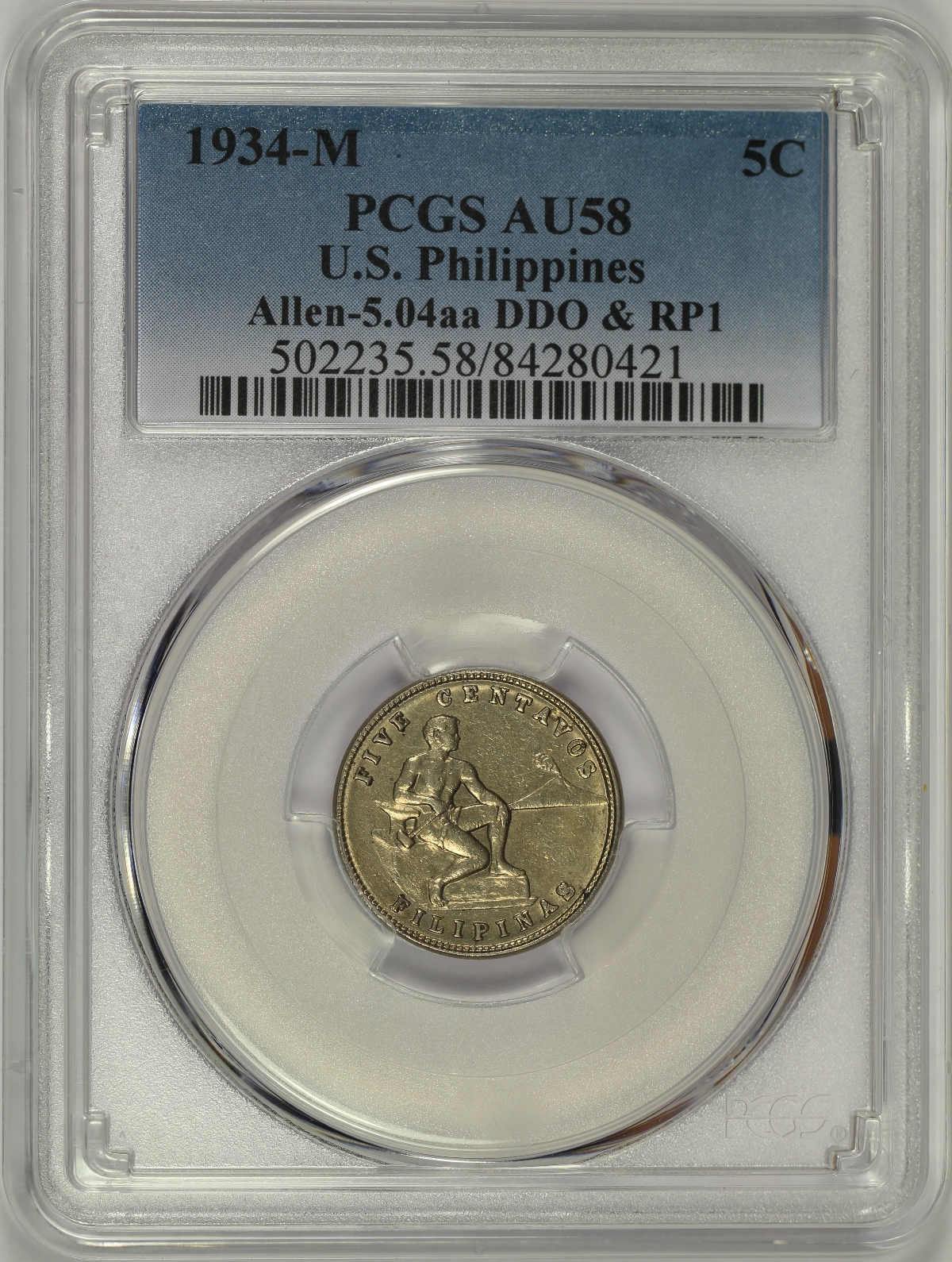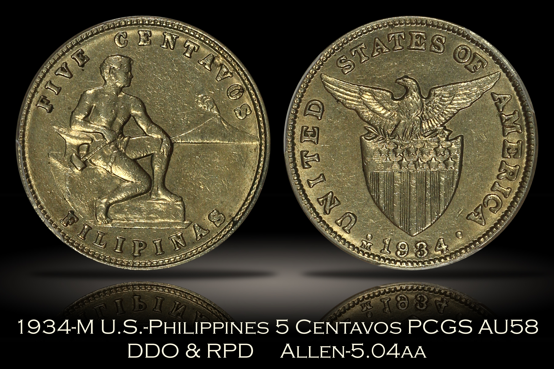 1934-M U.S.-Philippines 5 Centavos DDO RPD Allen 5.04aa PCGS AU58 |