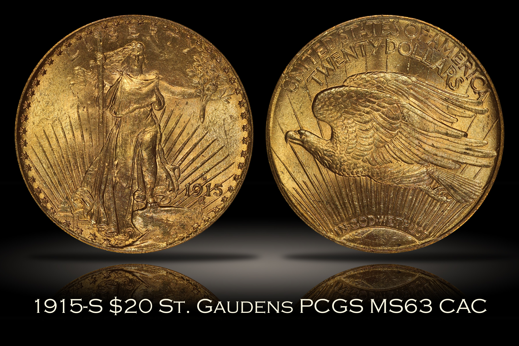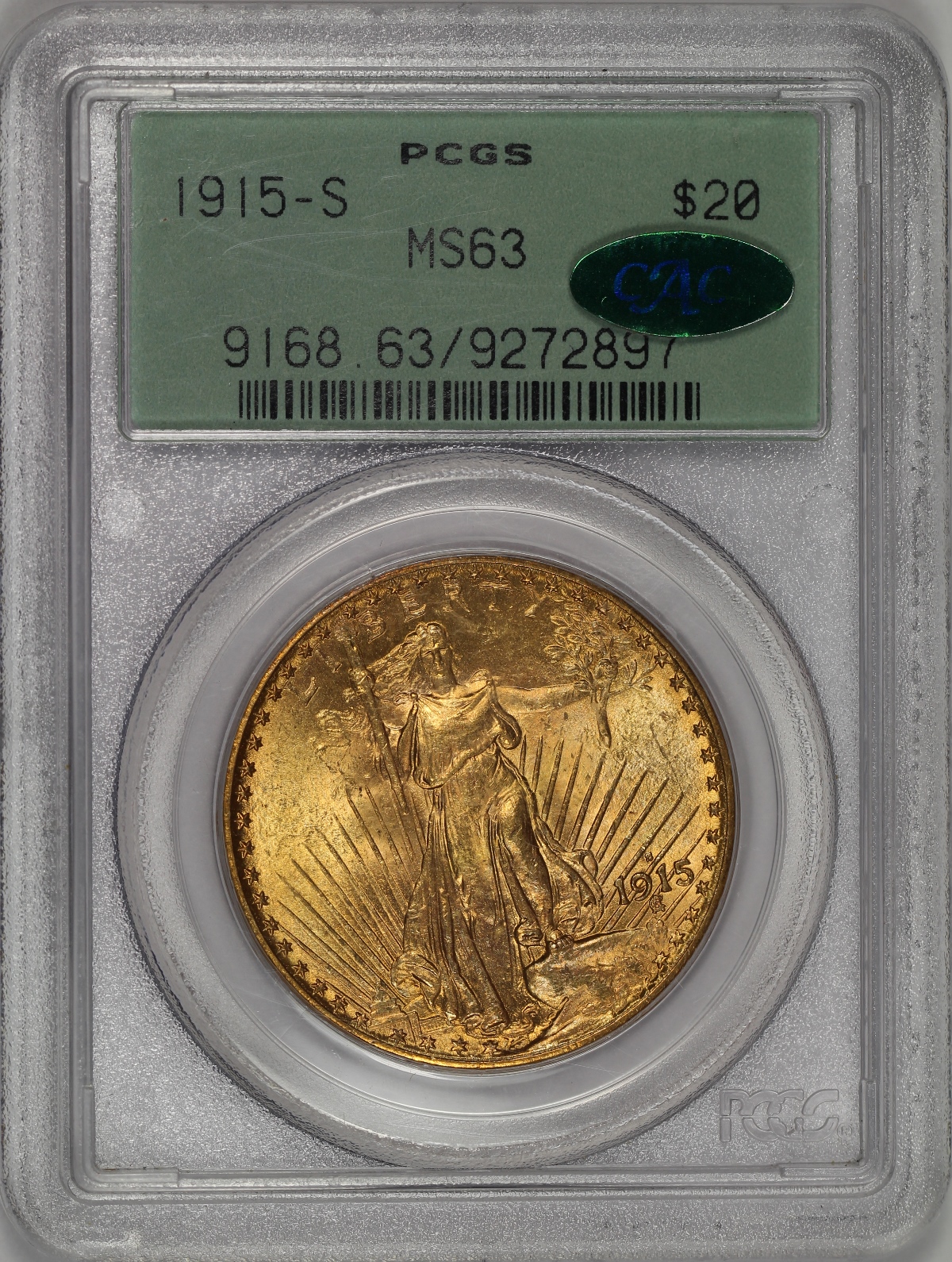 1915-S $20 St. Gaudens Gold PCGS MS63 OGH CAC