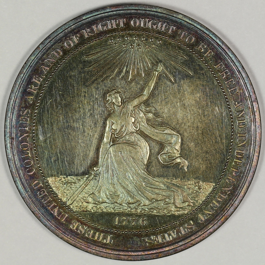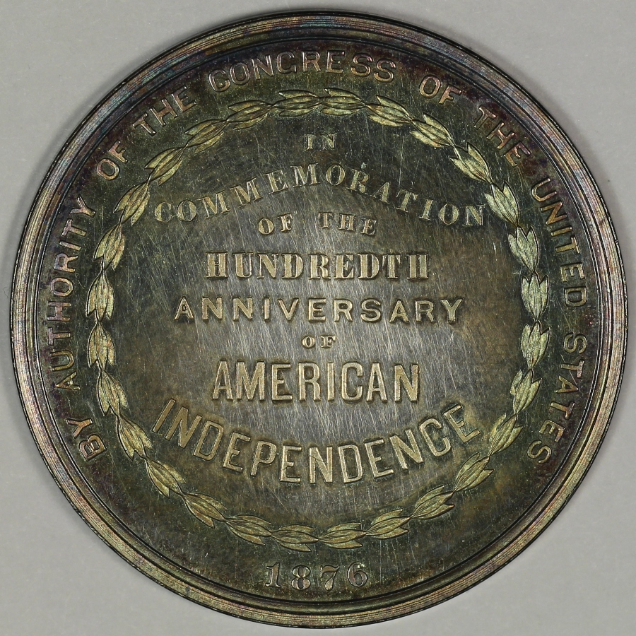 | 1876 was the 100th Anniversary of the signing of the Declaration of Independence and the formation of the United States of America. A great Centennial Exposition to celebrate the occasion was held in Philadelphia that year. The official medals of the Centennial Exposition were designed by William Barber and struck at the US Mint Exhibit on the fairgrounds in various metallic compositions. The version of the official medal offered here was struck in silver and was originally sold for $3.00 at the fair in 1876. The Hibler-Kappen book on So-Called Dollars reports that 10,133 of the 1876 Centennial Exposition Official Medals were made in silver. This example of the 1876 U.S. Centennial Exposition Official Silver Medal is listed as HK-20 in the Hibler-Kappen book on So-Called Dollars. The medal is uncertified and has amazing overall eye appeal. I have not sent the piece in for grading as I purchased it in the original case that is included and believe that many collectors would like to display it that way as well. Also, I do not believe the major grading services would give the piece a numerical grade as there is a touch of moderately strong hairlines evident of cleaning just to the left of Liberty which would likely prevent grading. There are also light hairlines over most of the rest of the prooflike fields only noticeable when tilted at specific angles that are much less problematic and comparatively minor. Otherwise, the piece appears to be a relatively high-grade example with no noticeable hits, marks or other issues. The color is mostly a moderately toned medium dark color, but when tilted into the light just right, the piece comes to life with amazing rainbow color and amazing overall eye appeal. I have included alternate photos of the medal to show both looks of the piece. The original presentation case for the medal is inscribed in gilt letters referencing the 1874 Congressional Act which designated the piece as the official medal of the Centennial Exposition. The case is in very nice condition for its age and shows only minimal wear to the corners and a touch of wear to the gilt lettering on the inside cover. Please note that the medal has been removed from the original case and placed into an archival plastic flip to protect both the medal and case from potential damage. A very pleasing and amazingly eye appealing example of the silver Centennial Exposition medal with the original presentation box. |