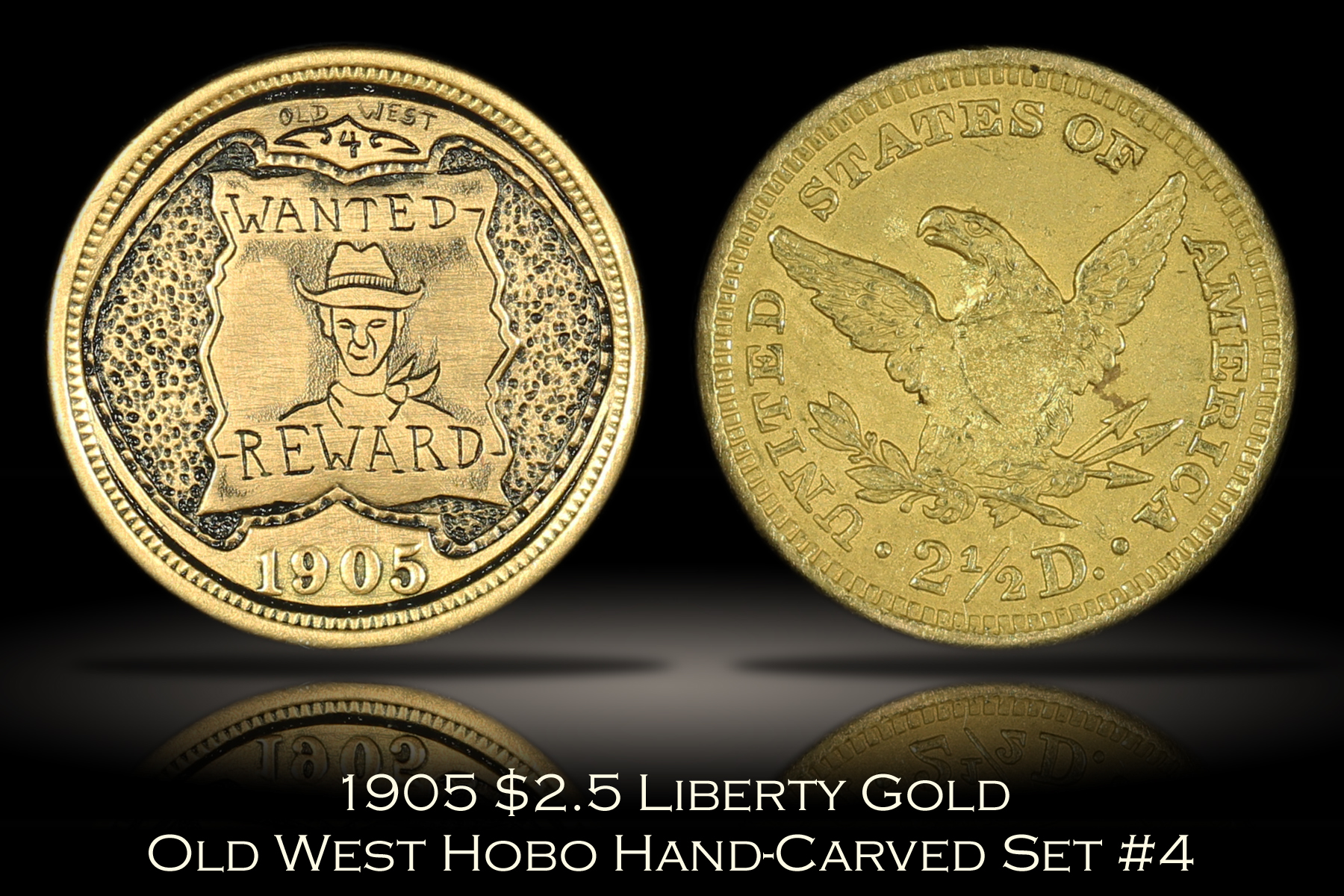 The fourth coin in the set is the 1905 $2.5 Gold Quarter Eagle. An iconic image of the Old West of the Wanted poster offering a reward for the capture of the lawbreaker, presumably dead or alive, has been carved in fine detail.