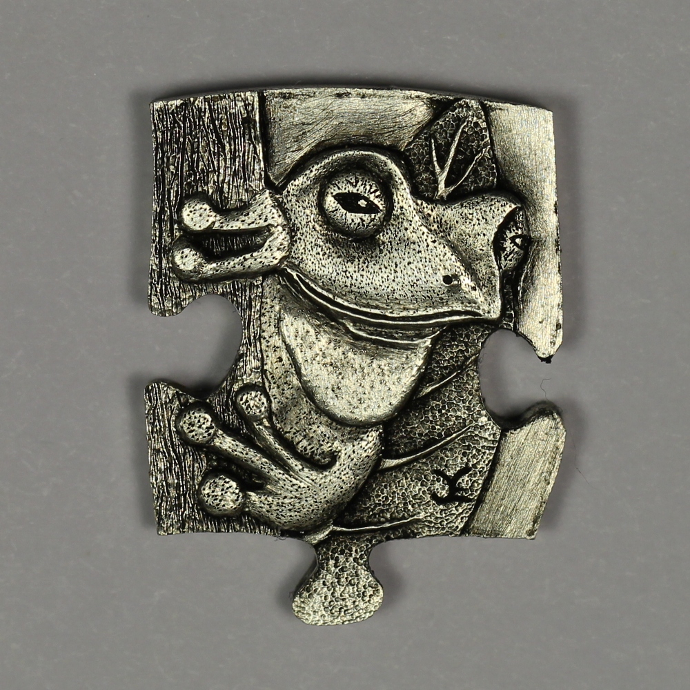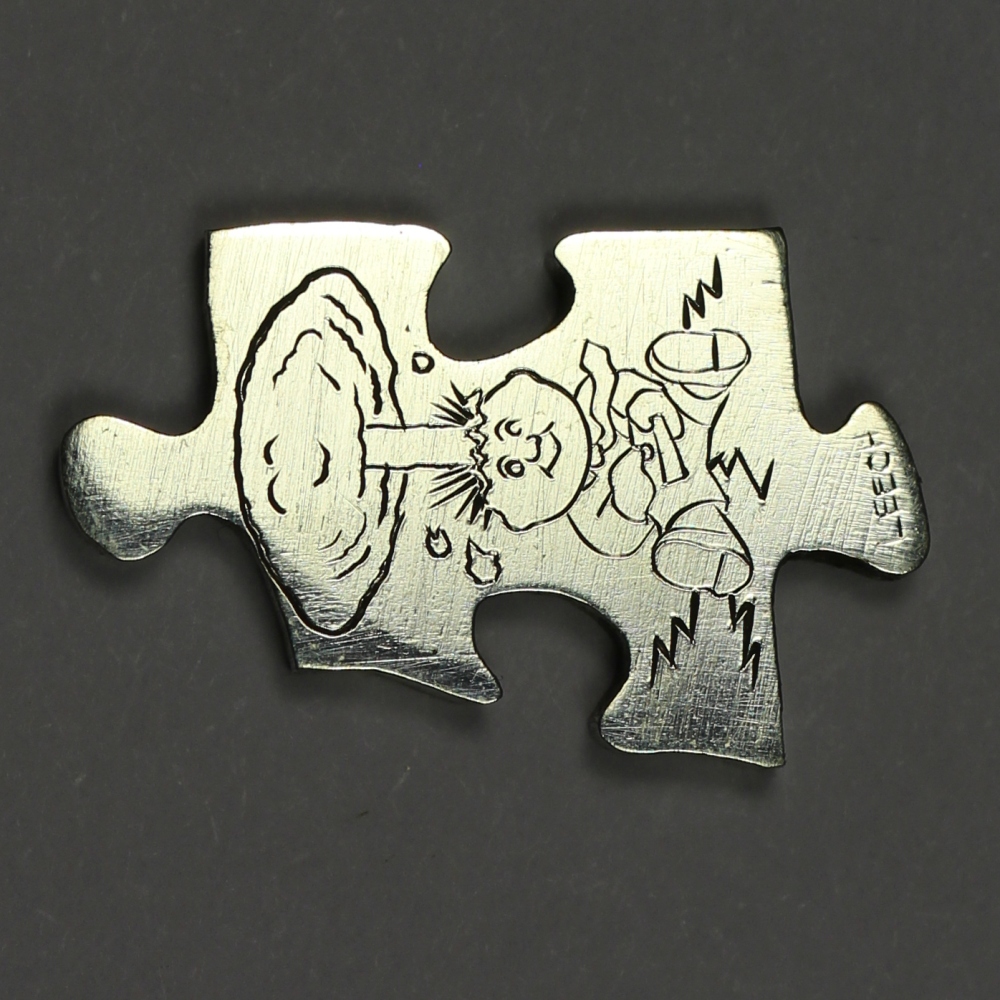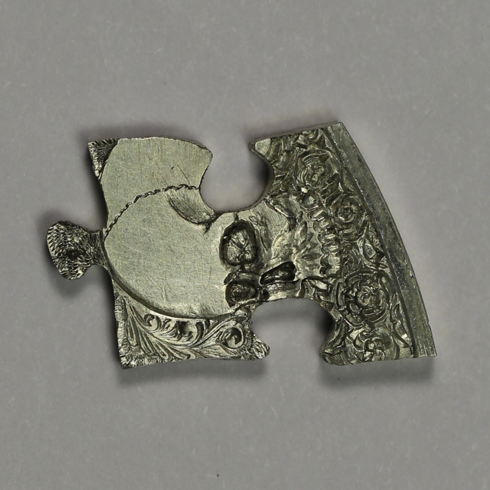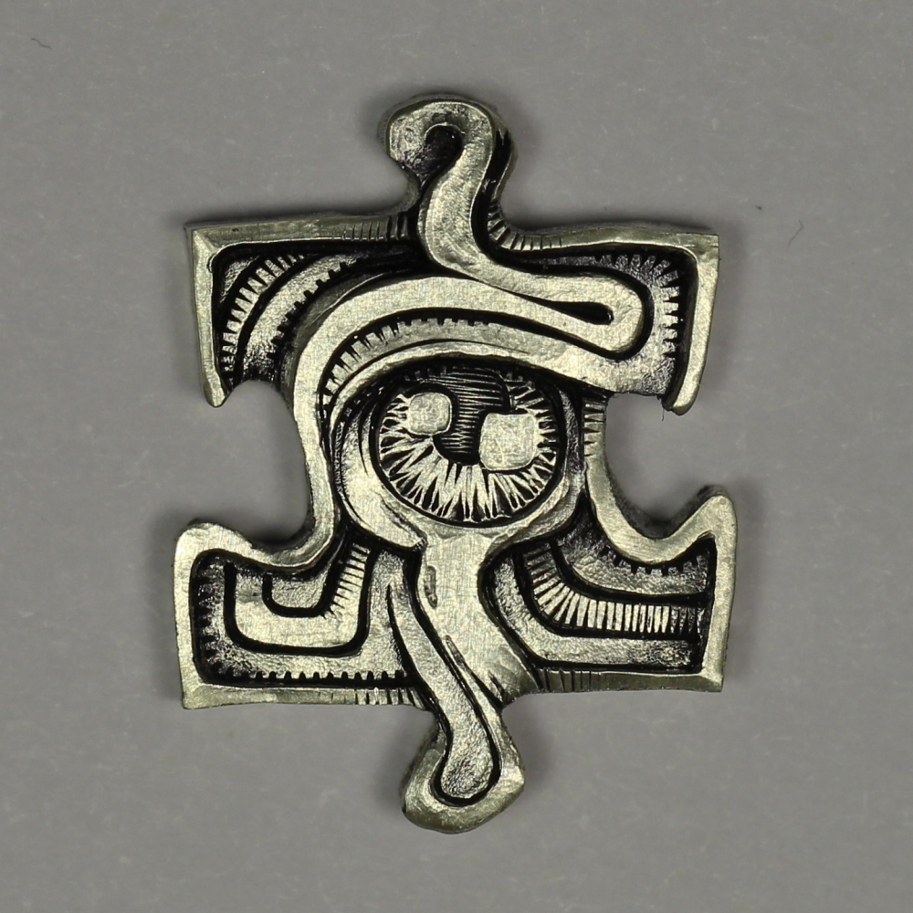 Over the period of several months, the individual pieces of this puzzle coin were carved by the following artists: Pedro Villarrubia, Blanca De La Hoz, Joe Paonessa, James Boudreau, Sean Bennington, John Schipp, Mike Lyness, Ben Proctor, Will Clark, Matthew Hagermann, Simone Cervellati, Jay DeBoer, Robbie Morris, Shane Hunter, Barb Hunter, Adam Leech, Lou Acker, Don Berry, David Raymond, Paolo Curcio, Jared Eason, Chris DeFlorentis, Harry Caldwell IV.